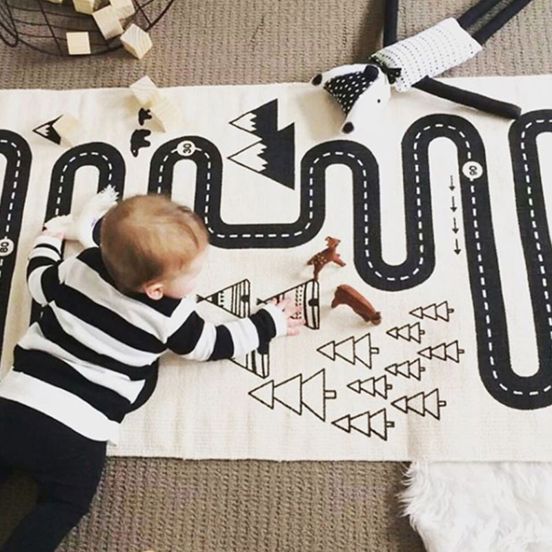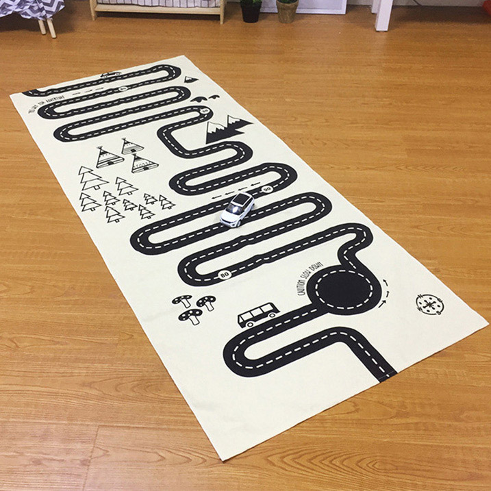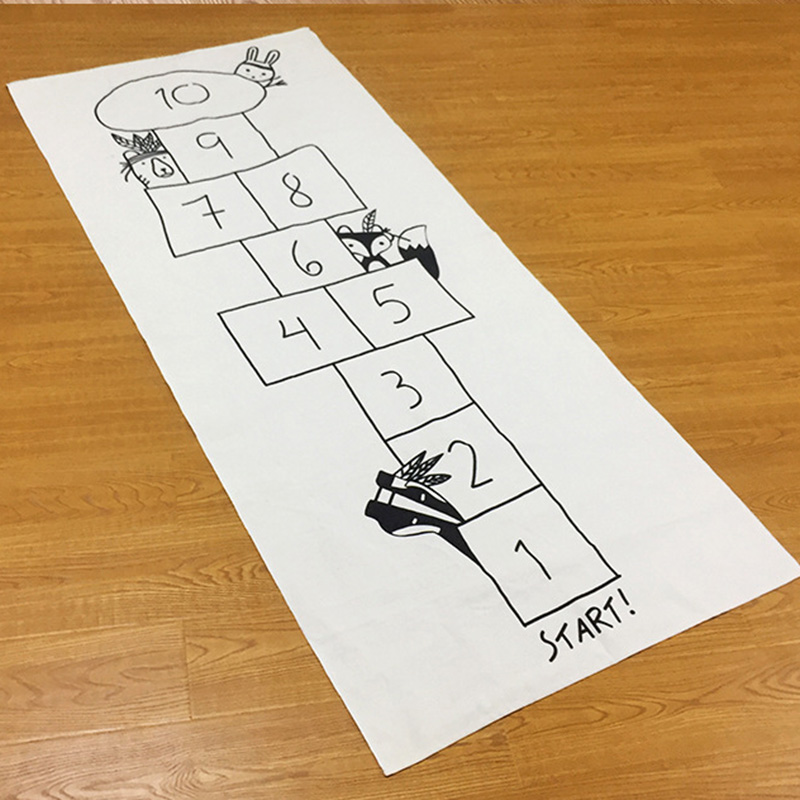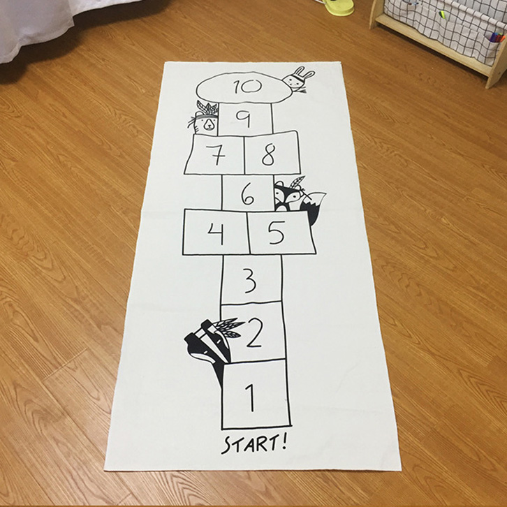 Name: Adventure road crawling mat, hopscotch crawling matColor: black and whiteSize: length 171CM * width 75C MFabric: Cotton canvas