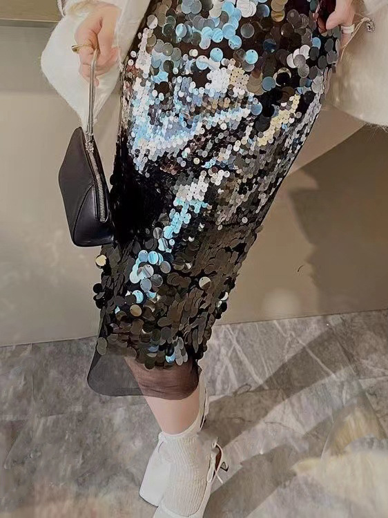 Affordable Luxury Fashion All-match Sequins Sheath Skirt