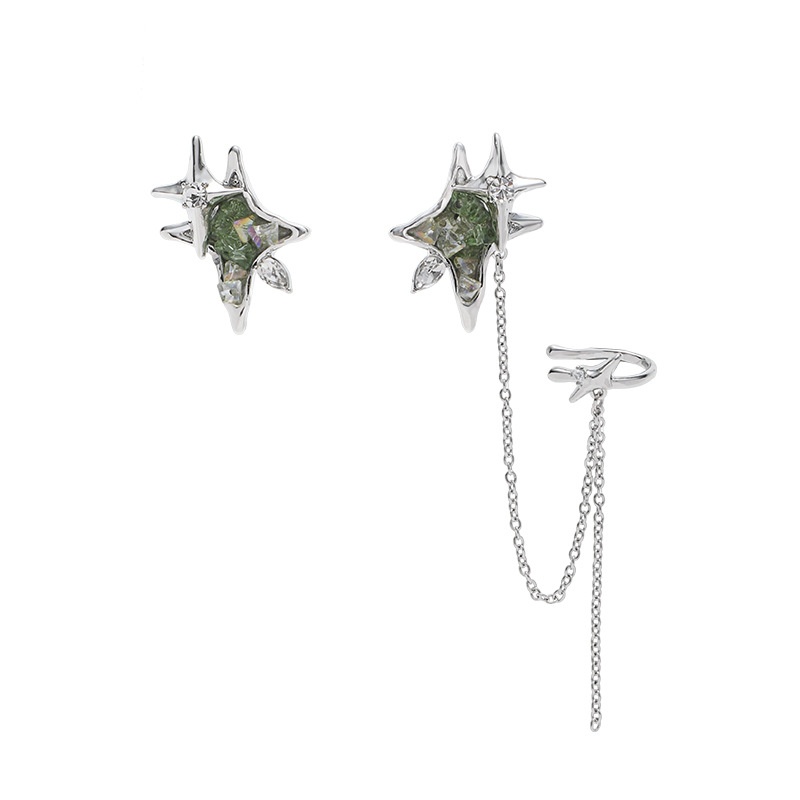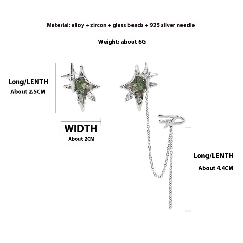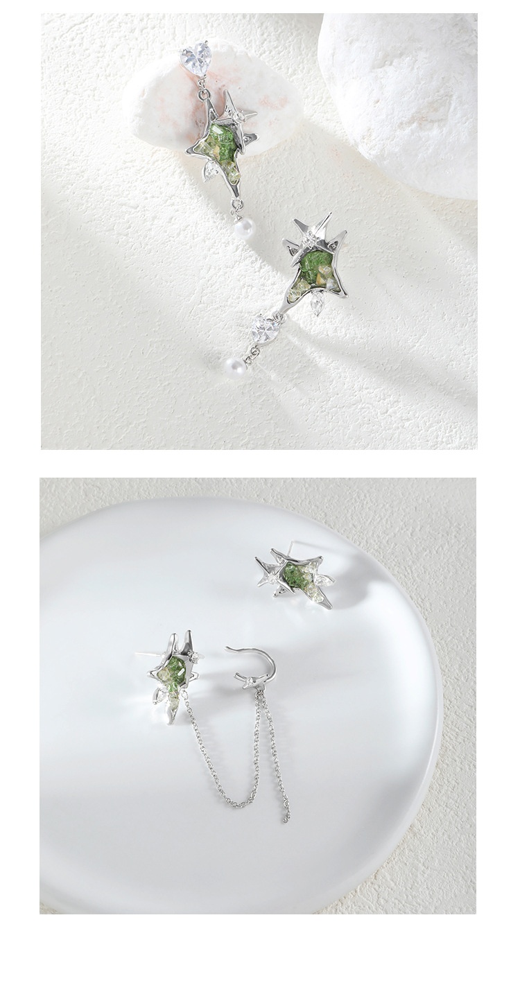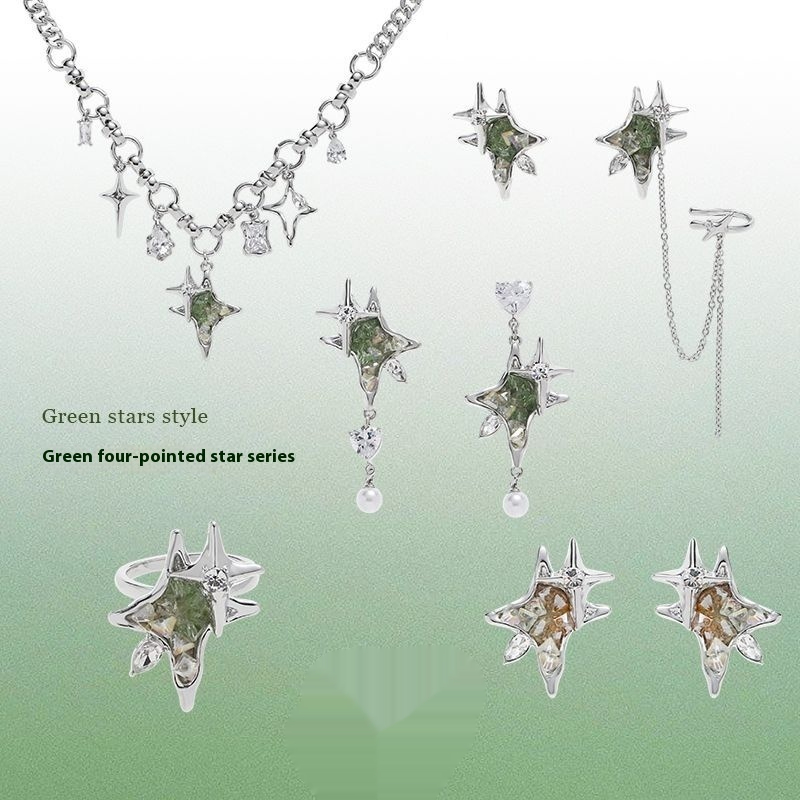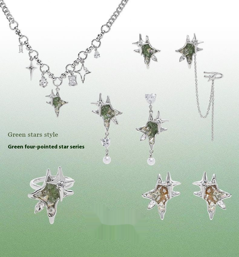 Affordable Luxury Fashion Design Green Four Eight-pointed Stars Gradient Earrings