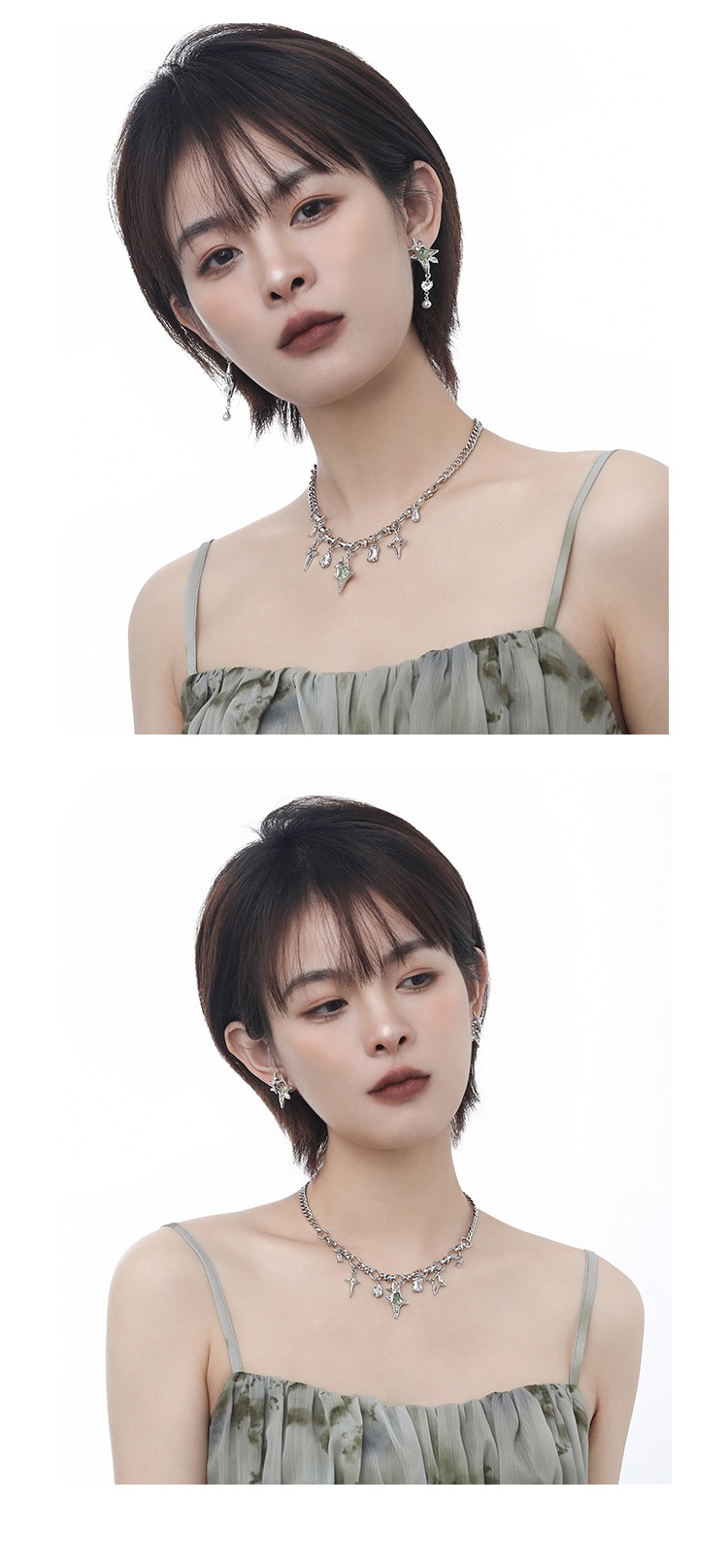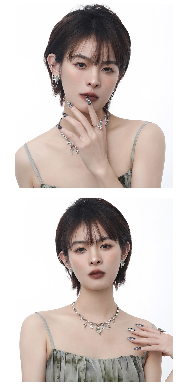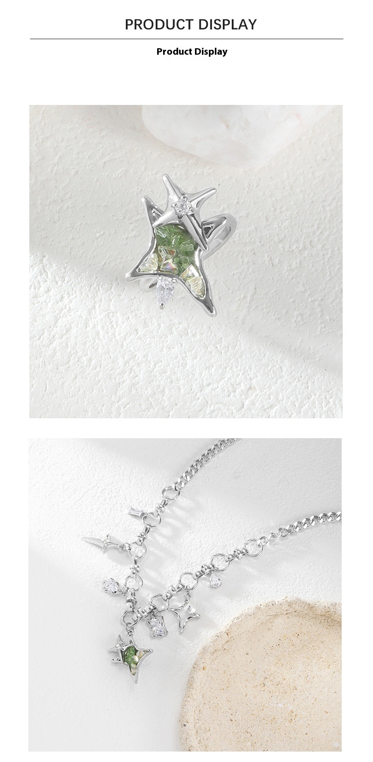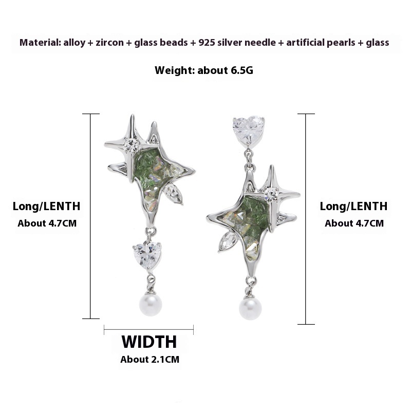 Affordable Luxury Fashion Design Green Four Eight-pointed Stars Gradient Earrings