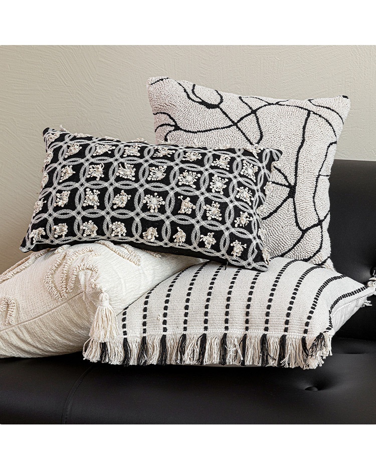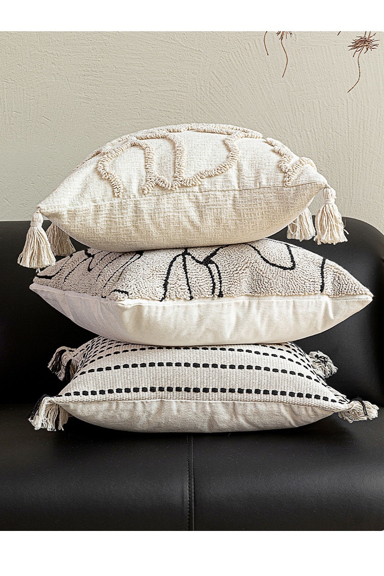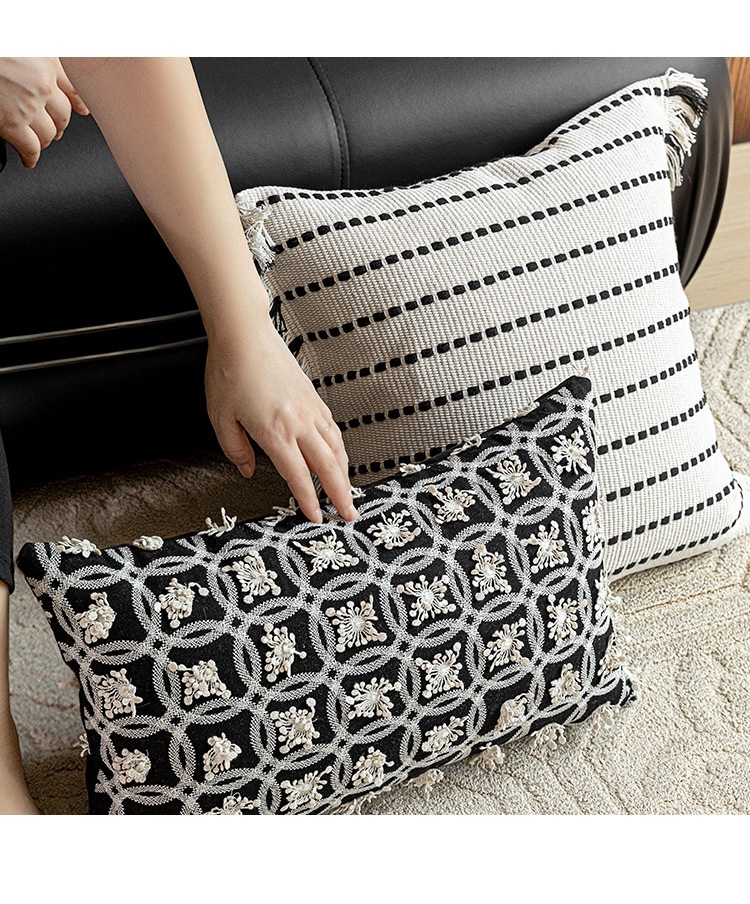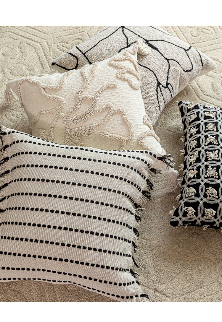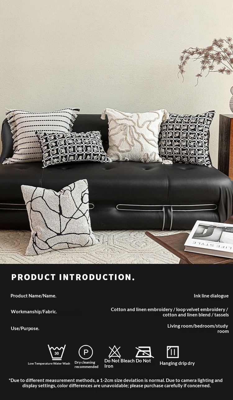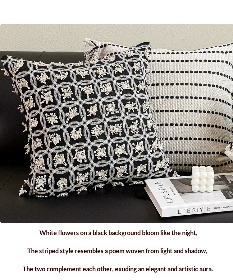 Color: 45x45 cm white base with black lines and tassels, 45x45 cm off-white with floral lines, 45x45 cm marble-patterned embroidery
