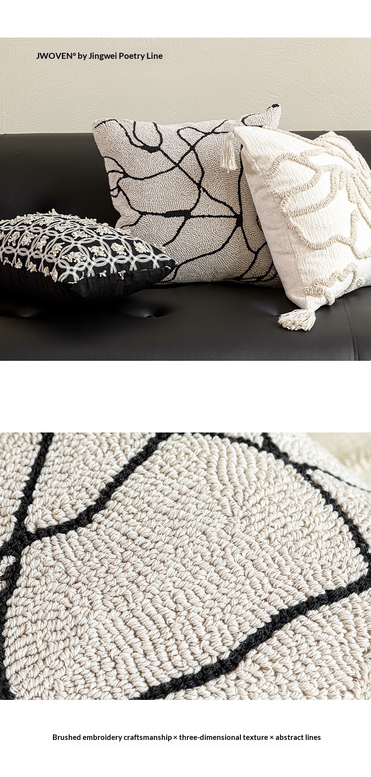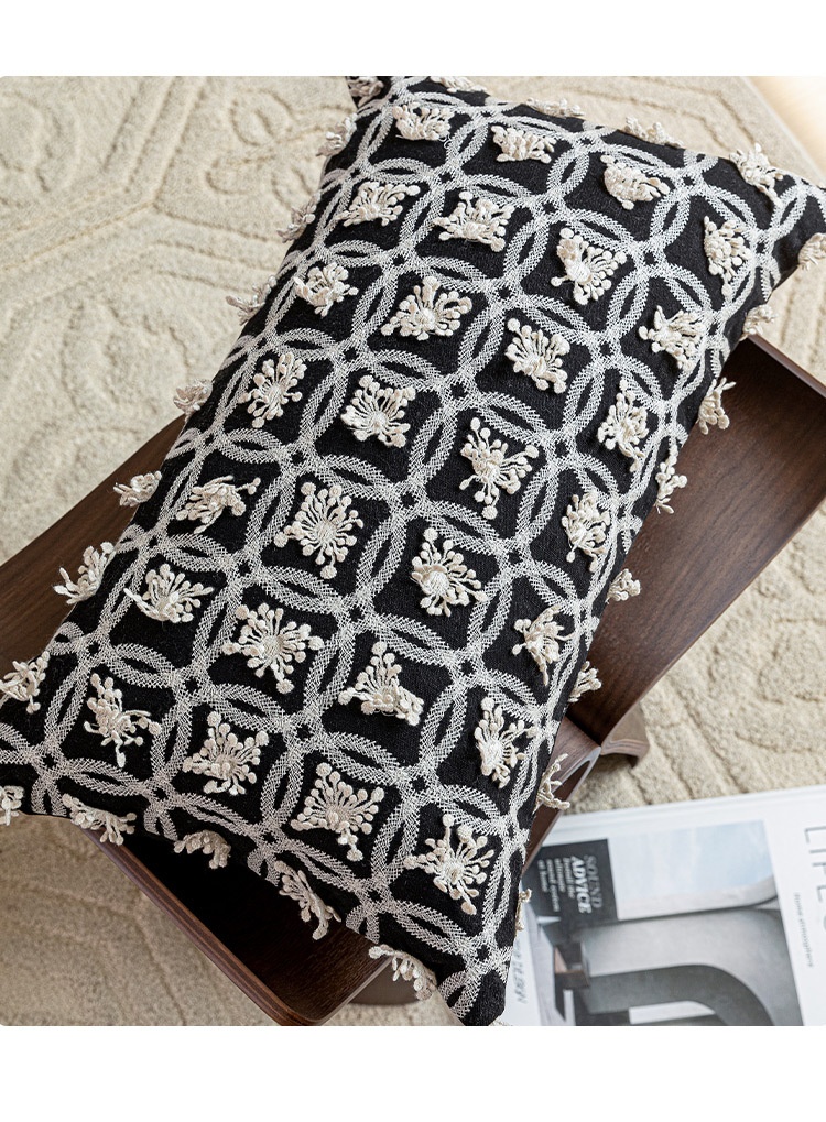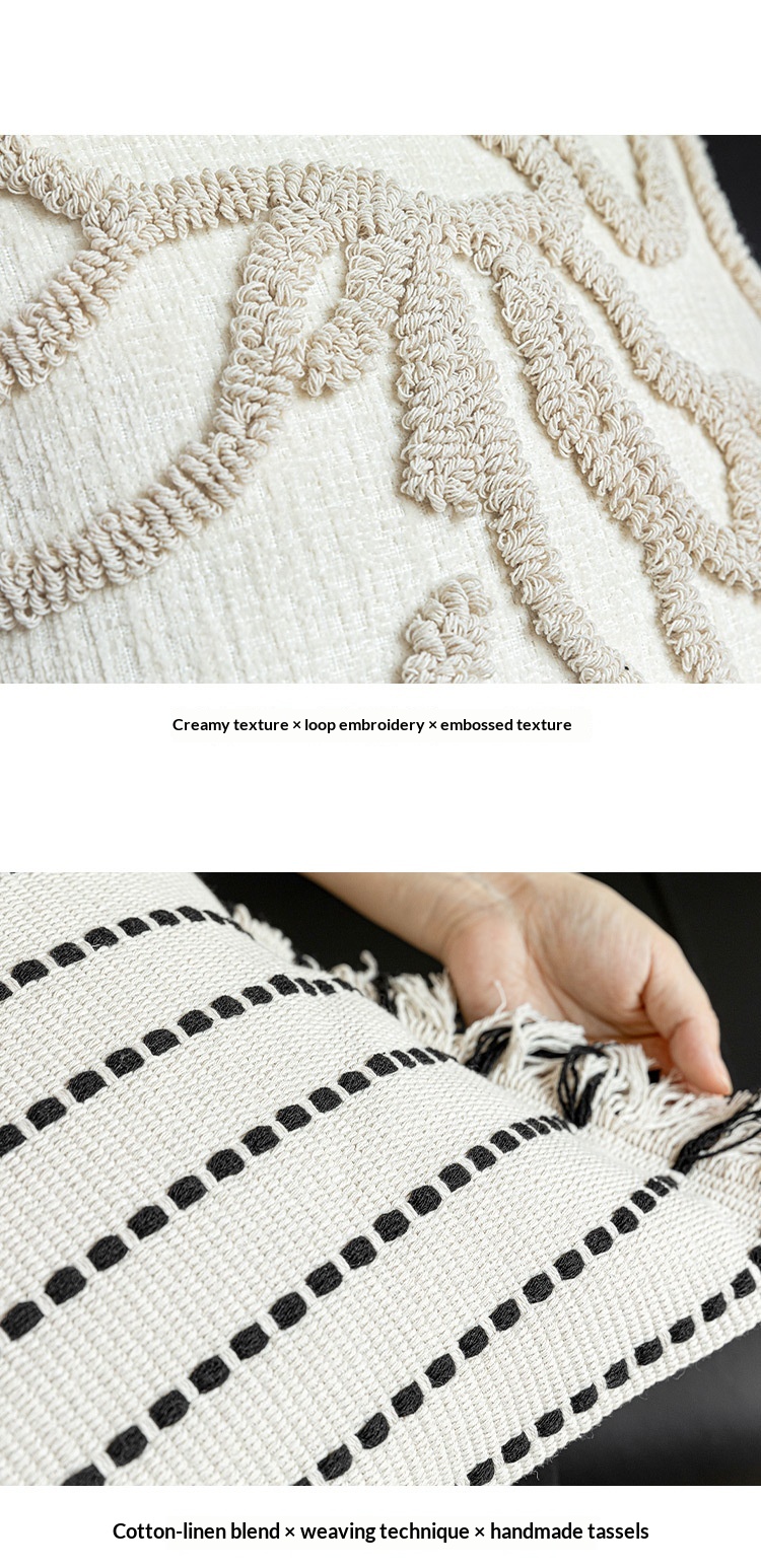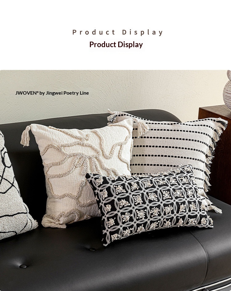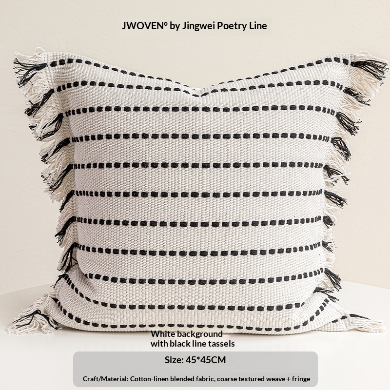 Color: 45x45 cm white base with black lines and tassels, 45x45 cm off-white with floral lines, 45x45 cm marble-patterned embroidery