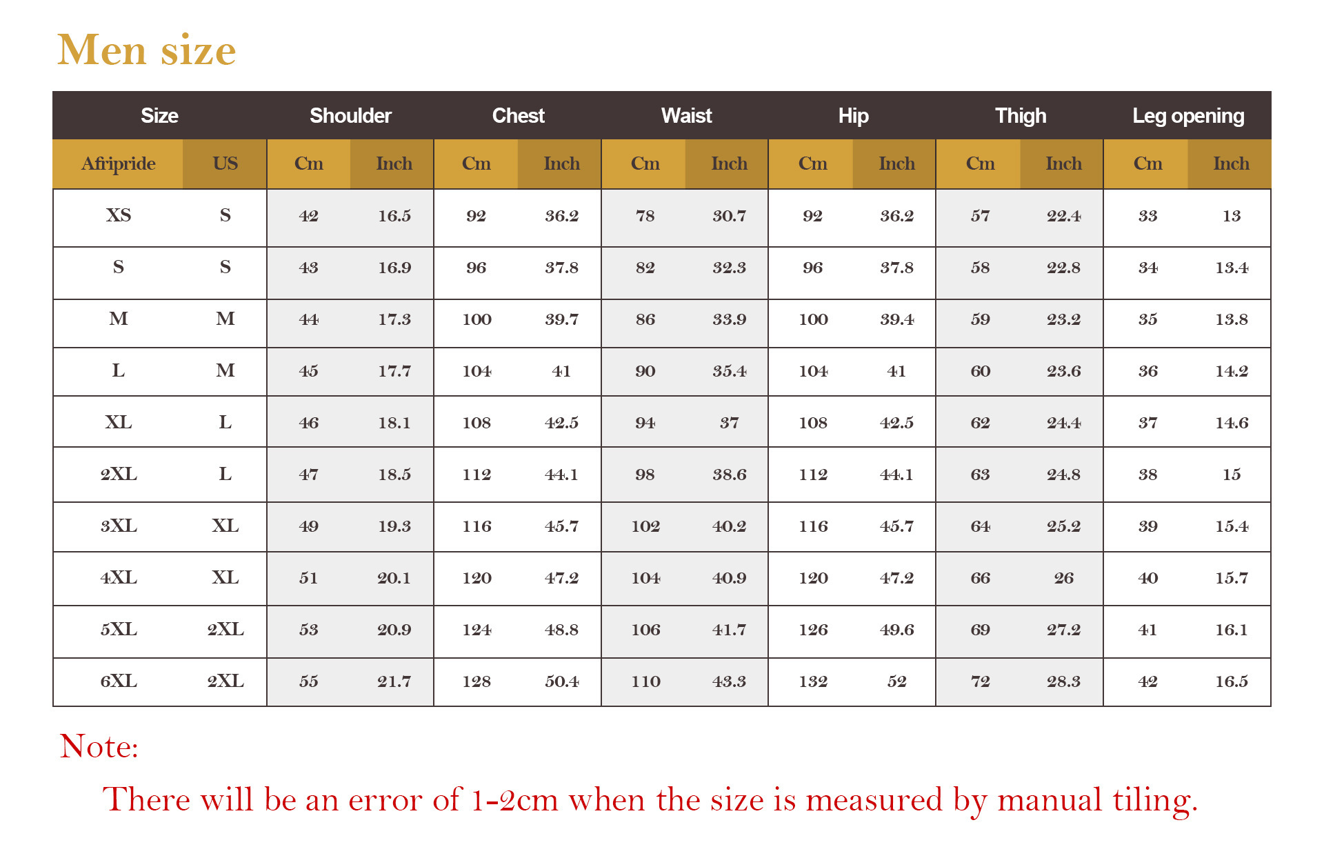 Size: S,M,L,XL,2,2XL,3XL,4XL,5XL,6XL