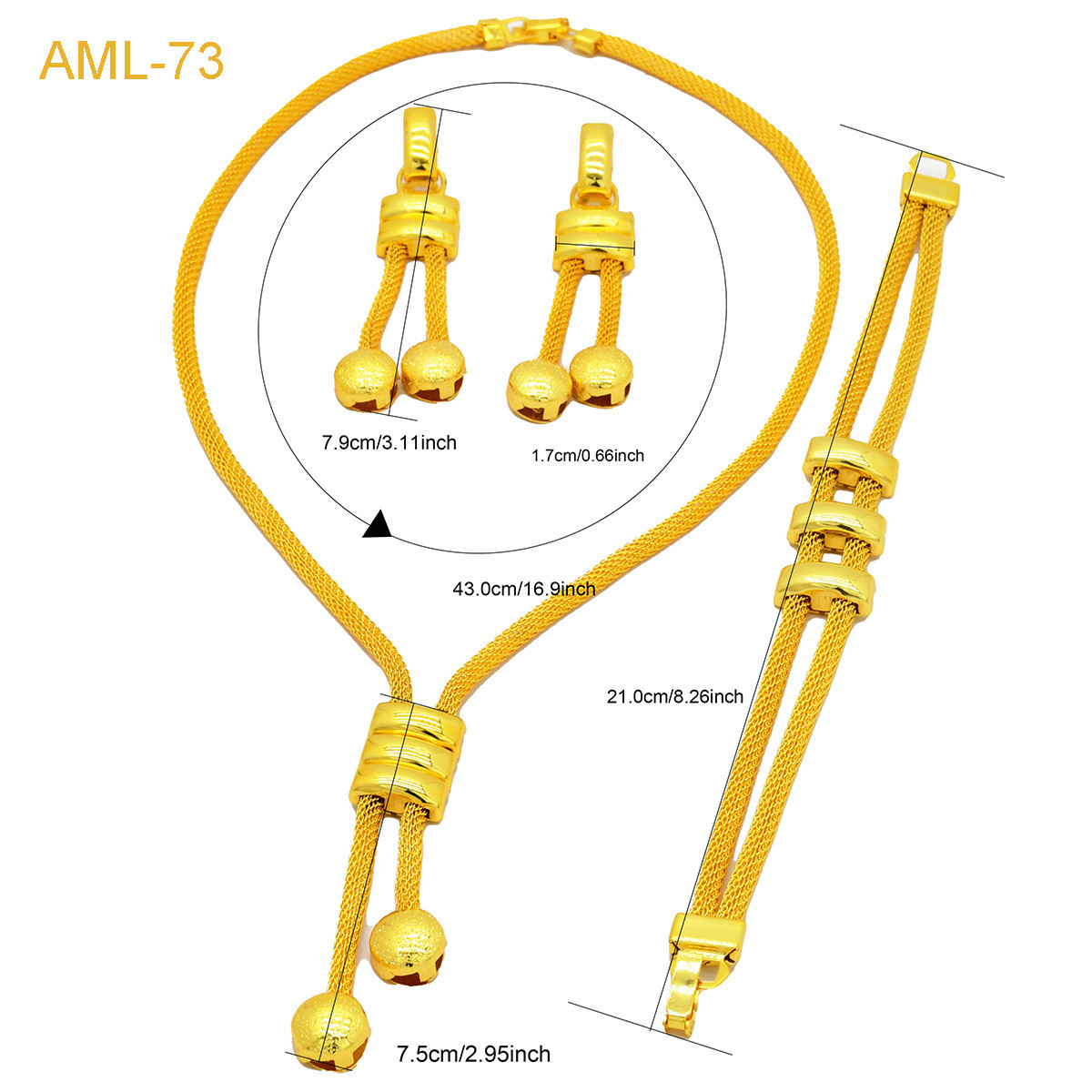 Bracelet *1+ Necklace *1+ Earrings *1 pair
