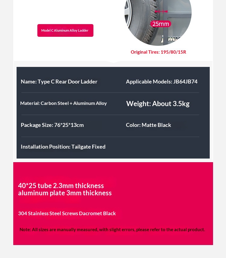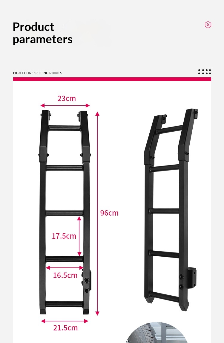 Product information:Color Category: BlackSpecification: Model C Rear Door Ladder [Aluminum Alloy]
