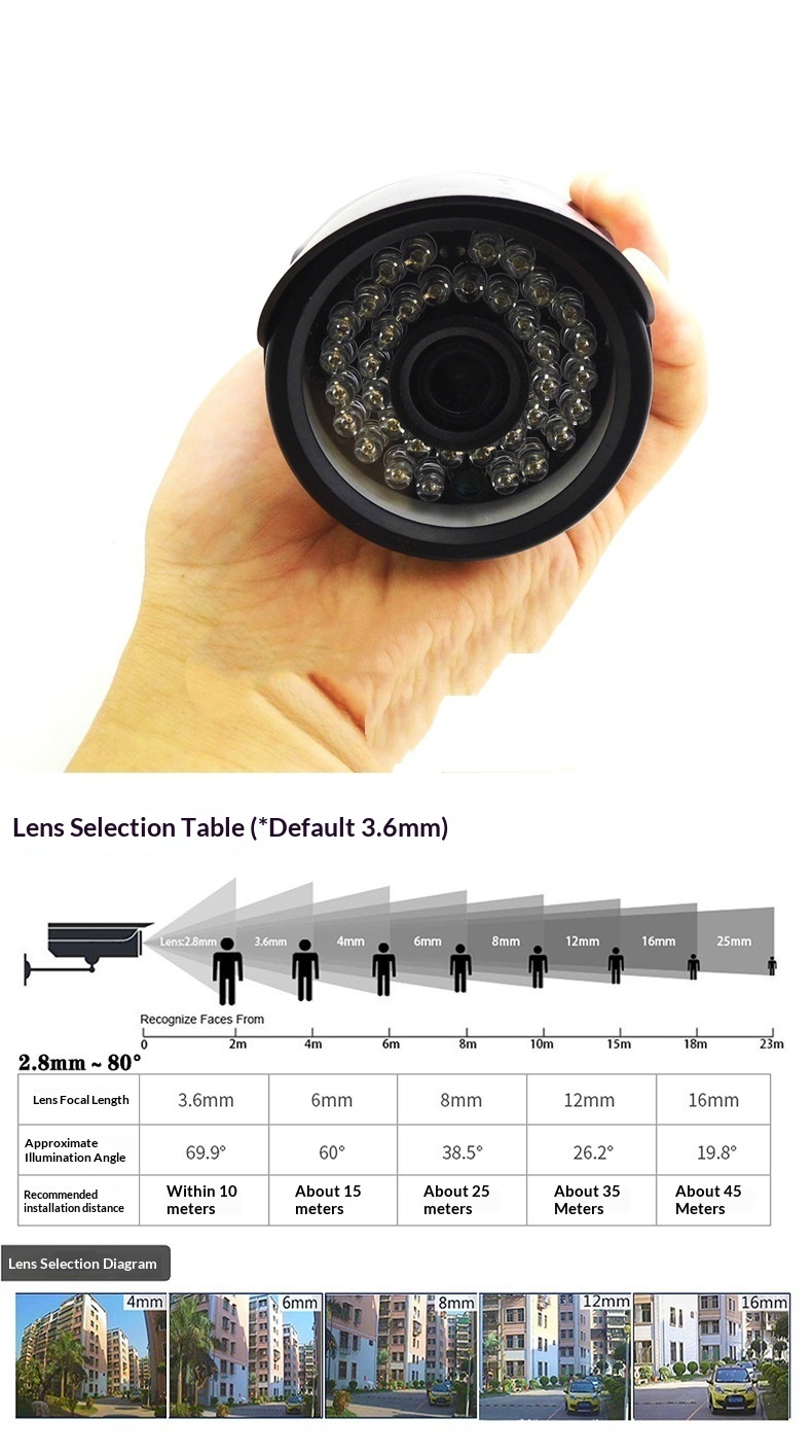 Specifications: Coaxial AHD-1080P-PAL-3.6mm (PAL format, suitable for China, Europe, and Africa);