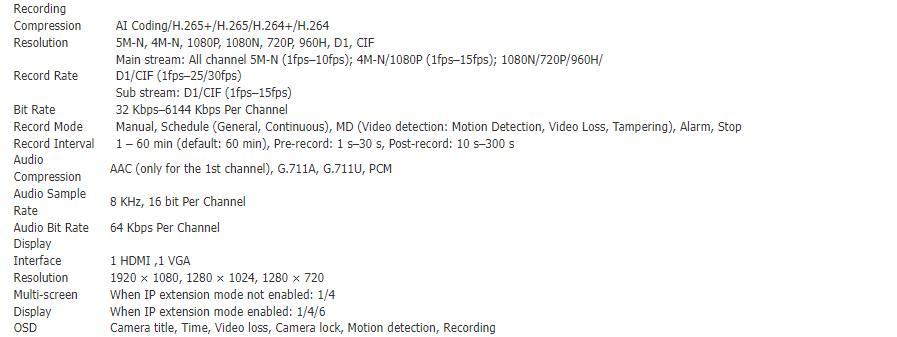Model: DH-XVR5116HS-I3Type: Video Surveillance HostSpecifications: 16-channel DH-XVR5116HS-I3