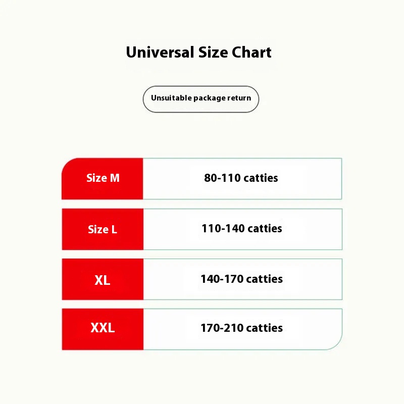 Specifications: S(2 pcs),M(2 pcs),L(2 pcs),XL(2 pcs),XXL(2 pcs), free size (40.00kg-80.00kg (2)