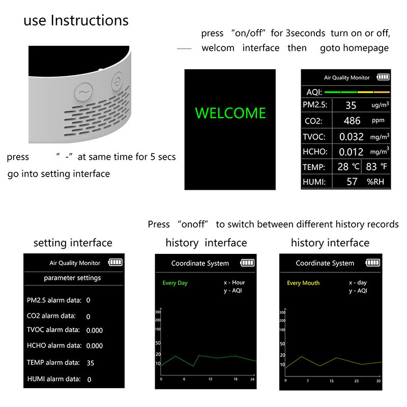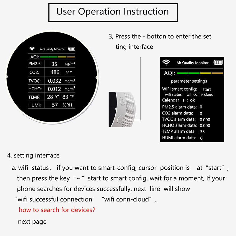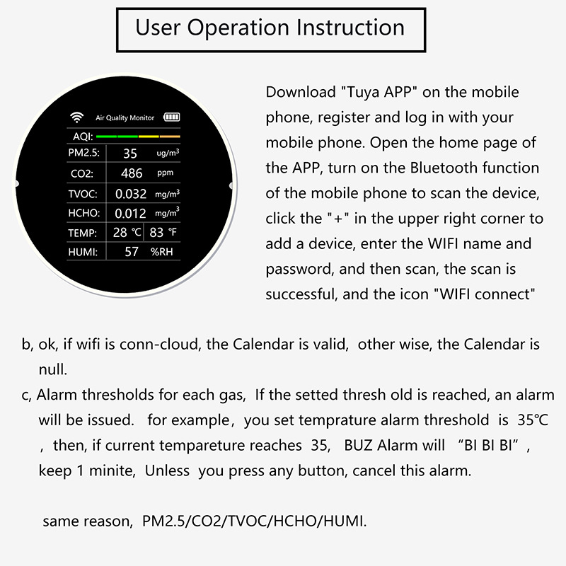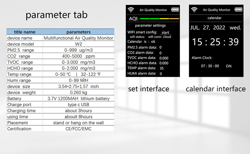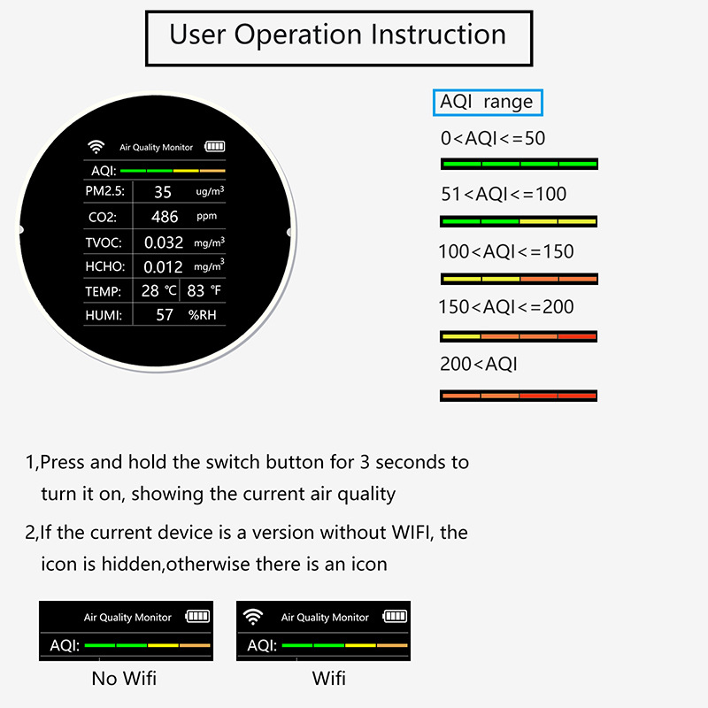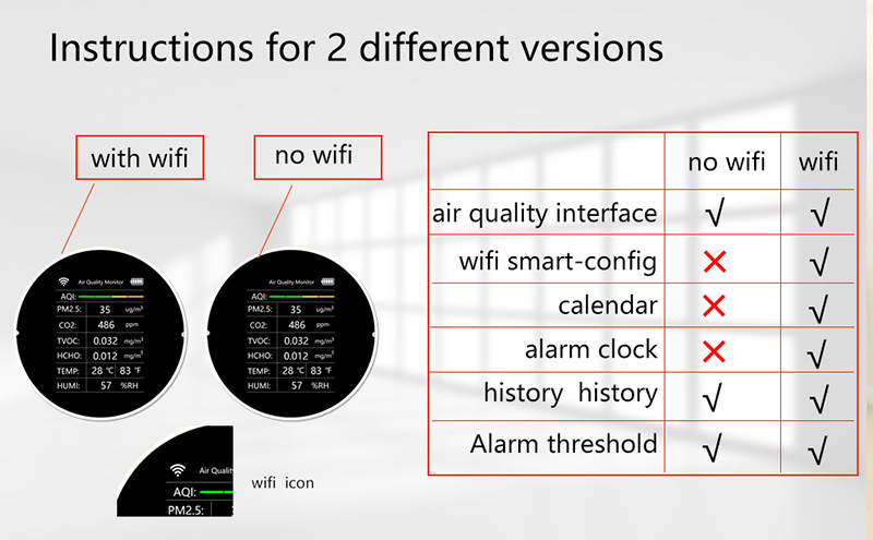 Specifications: white-VOC-without WIF, white-VOC-with WIFI, white-NDIR-without WIFI, white-NDIR-with WIFI, black-VOC-without WIFI, black-VOC-with WIFI, black-NDIR -Without WIFI, black-NDIR-with WIFI
