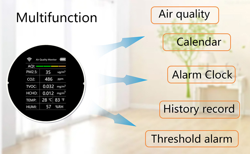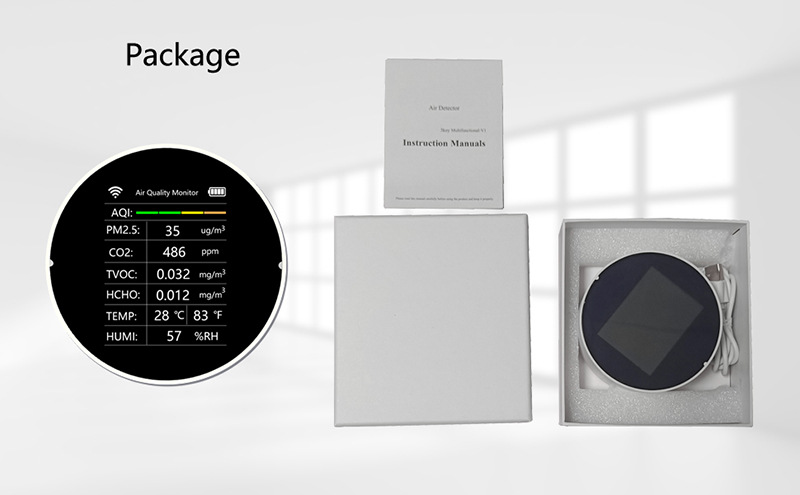 Measurement object: CO2 PM2.5 TVOC CH2O TEMP HUMI AQI