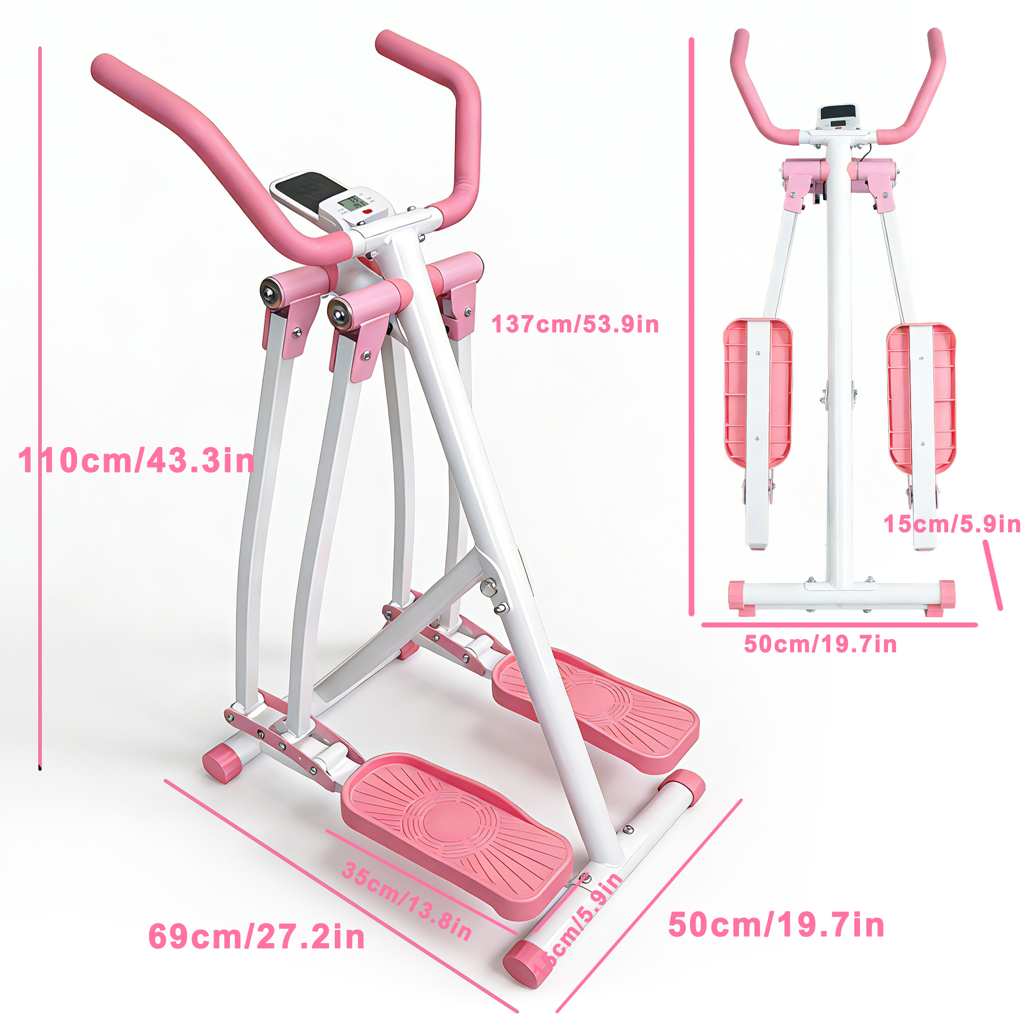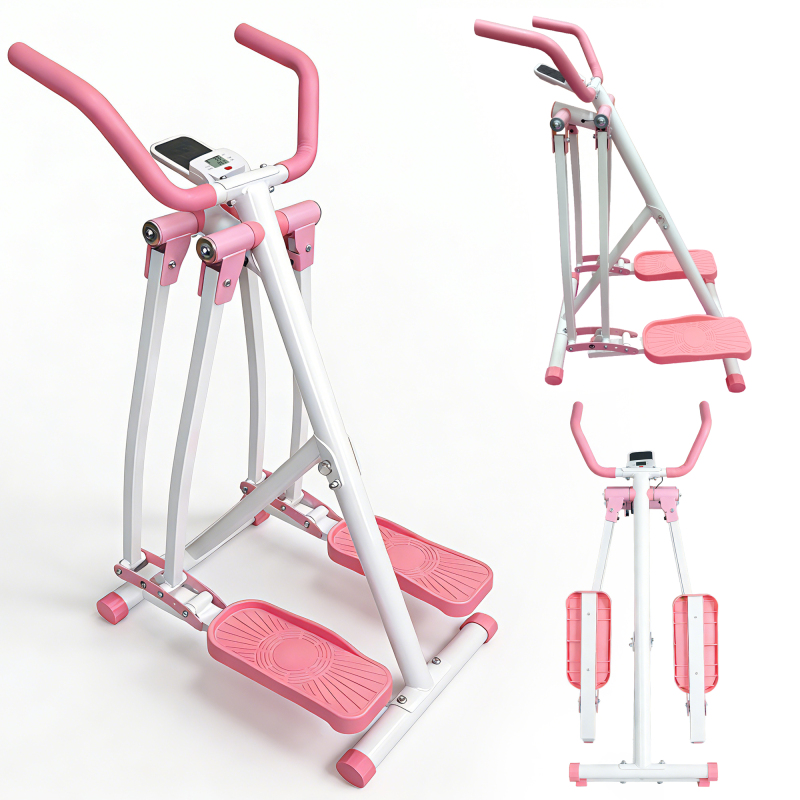 • . Compact & Foldable Design: Maximize Space, Minimize Clutter for Your Home Fitness RoutineDesigned with small living spaces in mind—apartments, bedrooms, home offices, or even cozy nooks— This Air Walk Elliptical Machine transforms how you store workout equipment. Unlike bulky traditional ellipticals that take up permanent floor space, this machine features a sleek, user-friendly foldable structure that lets you tuck it away effortlessly when not in use.