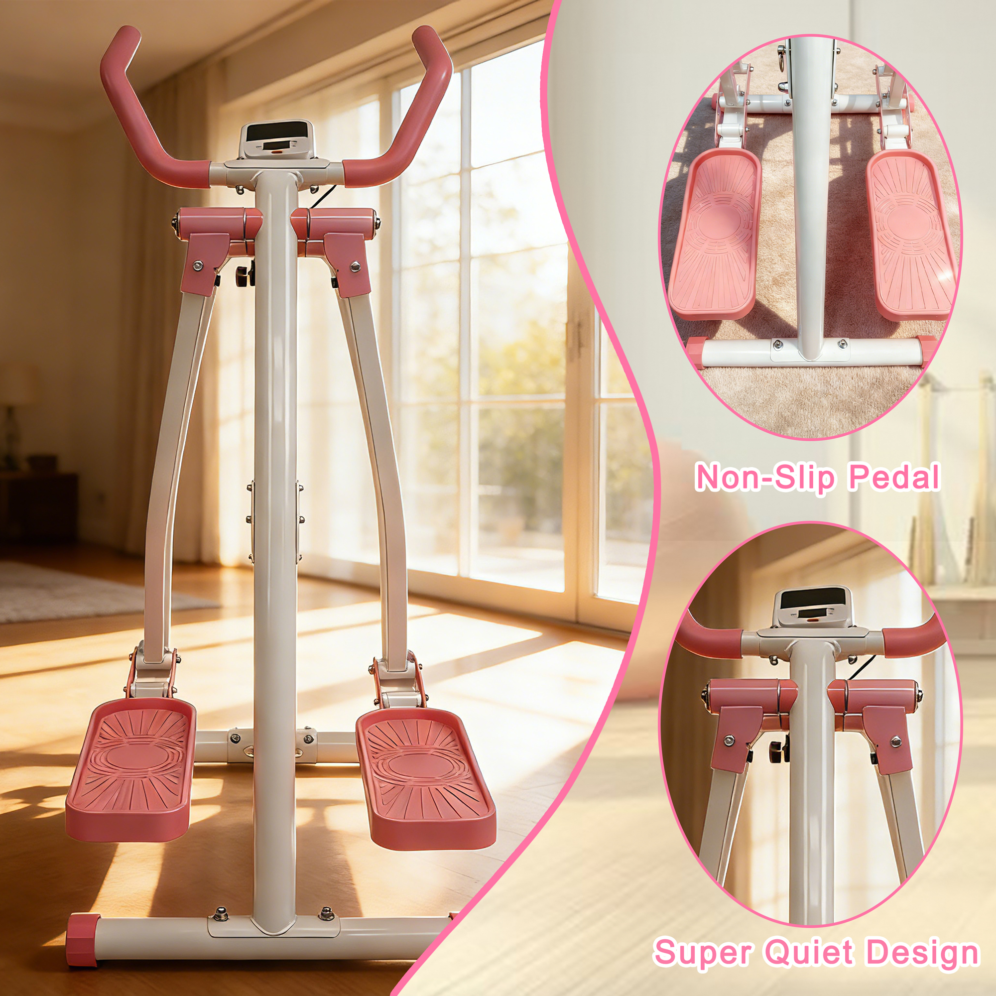 • LOW-IMPACT FULL-BODY CARDIO WORKOUT FOR ALL AGES & FITNESS LEVELSExperience joint-friendly exercise that minimizes stress on knees, hips, and ankles—perfect for beginners, seniors, or anyone seeking gentle yet effective cardio. This Air Walk Elliptical engages arms, legs, and core simultaneously, delivering a total-body burn that rivals running or cross-country skiing, without the high impact. Whether you’re warming up, maintaining fitness, or recovering, it adapts to your needs for consistent