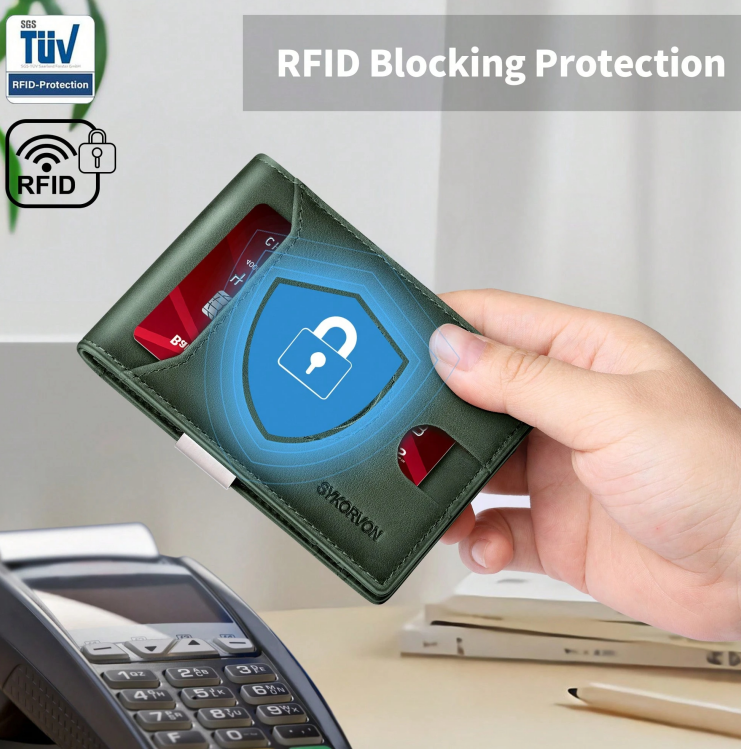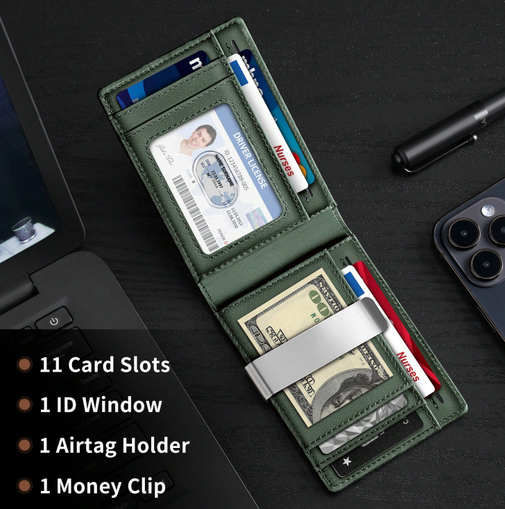 Airtag Wallet Men, Minimalist Front Pocket Wallets With Aritag Holder, Genuine Leather Bifold Slim Wallet, RFID Blocking Wallet For Men Up To 11cards -Air Tag Not Included