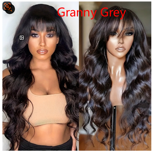 Wig Style: Long Curly Hair with Straight or Side-Swept Bangs