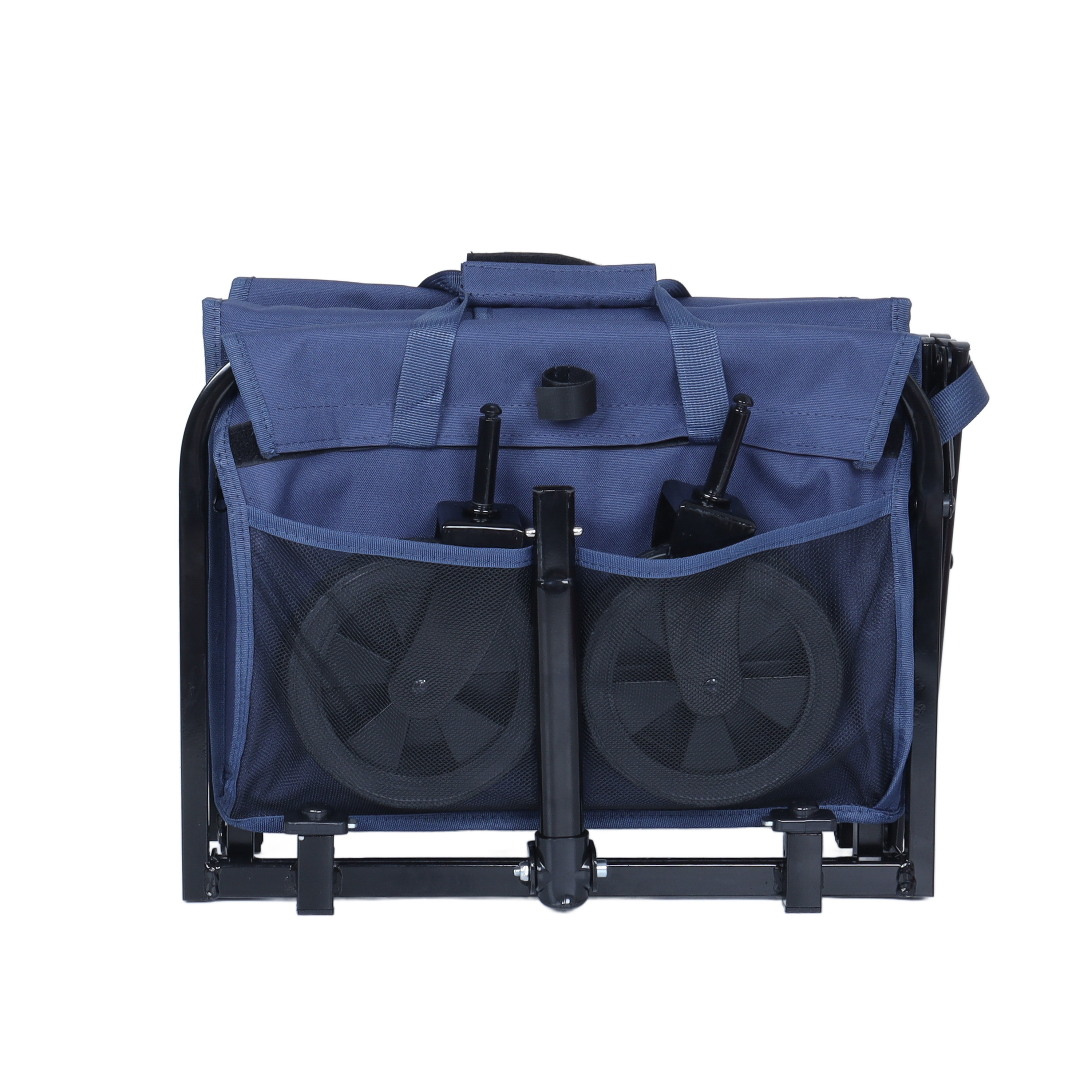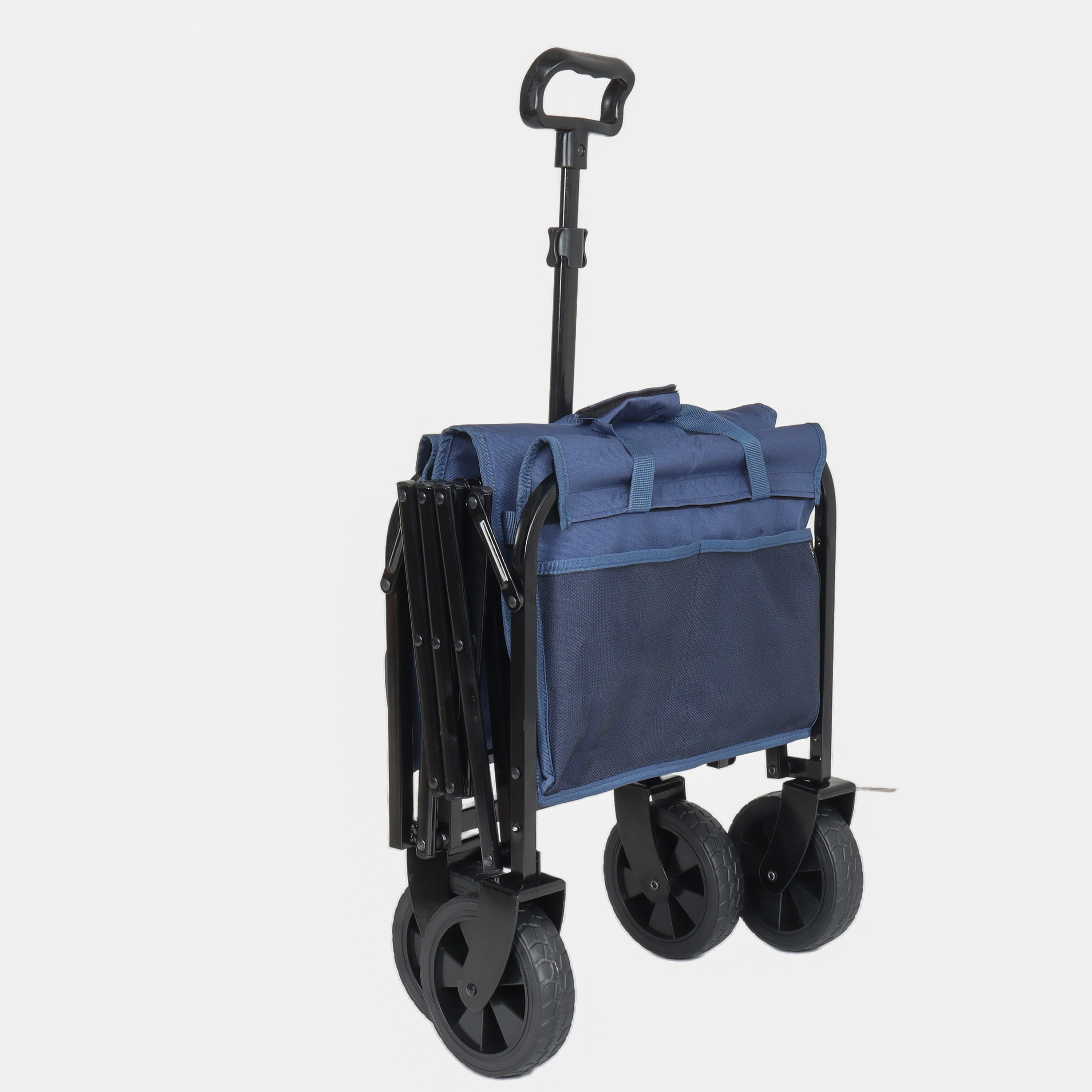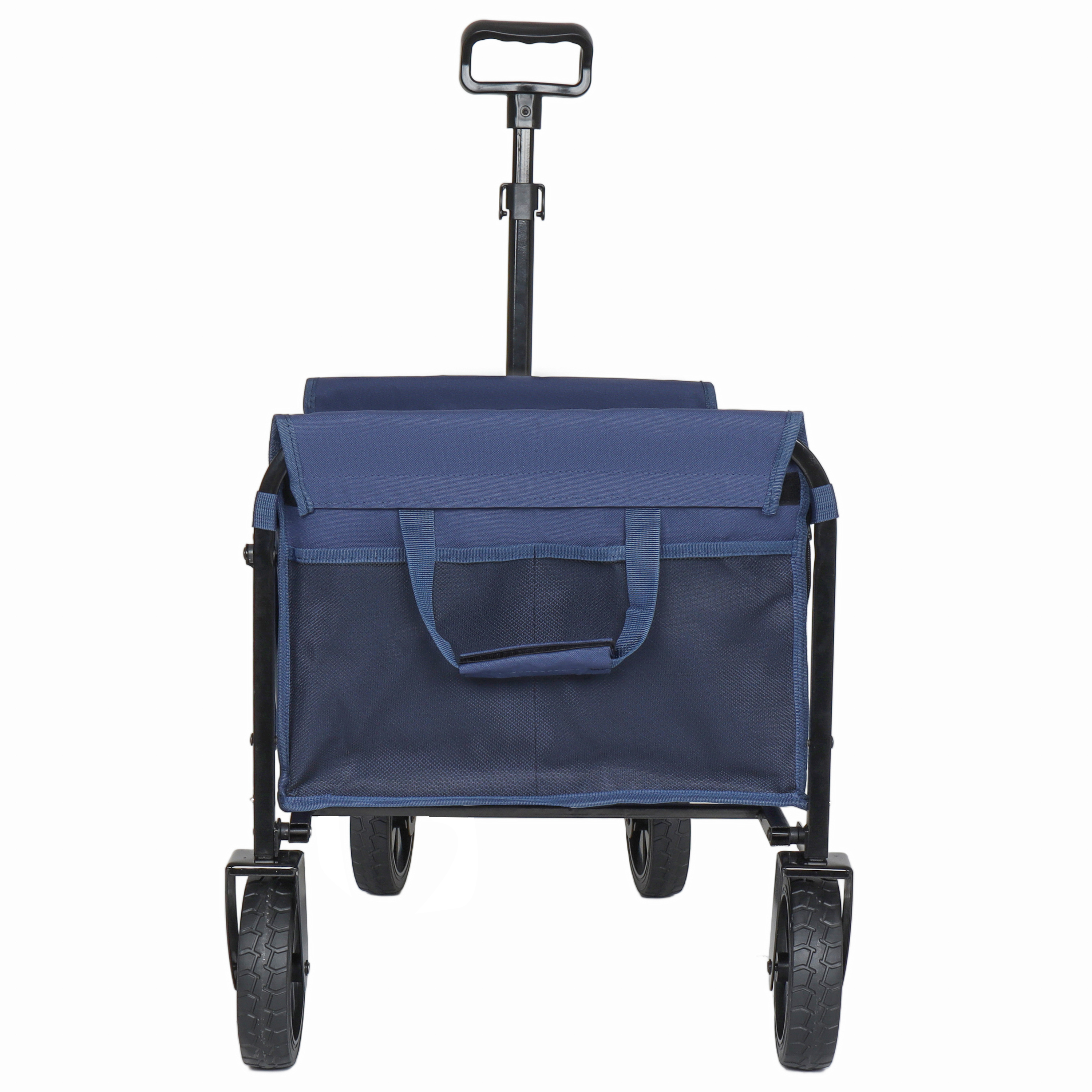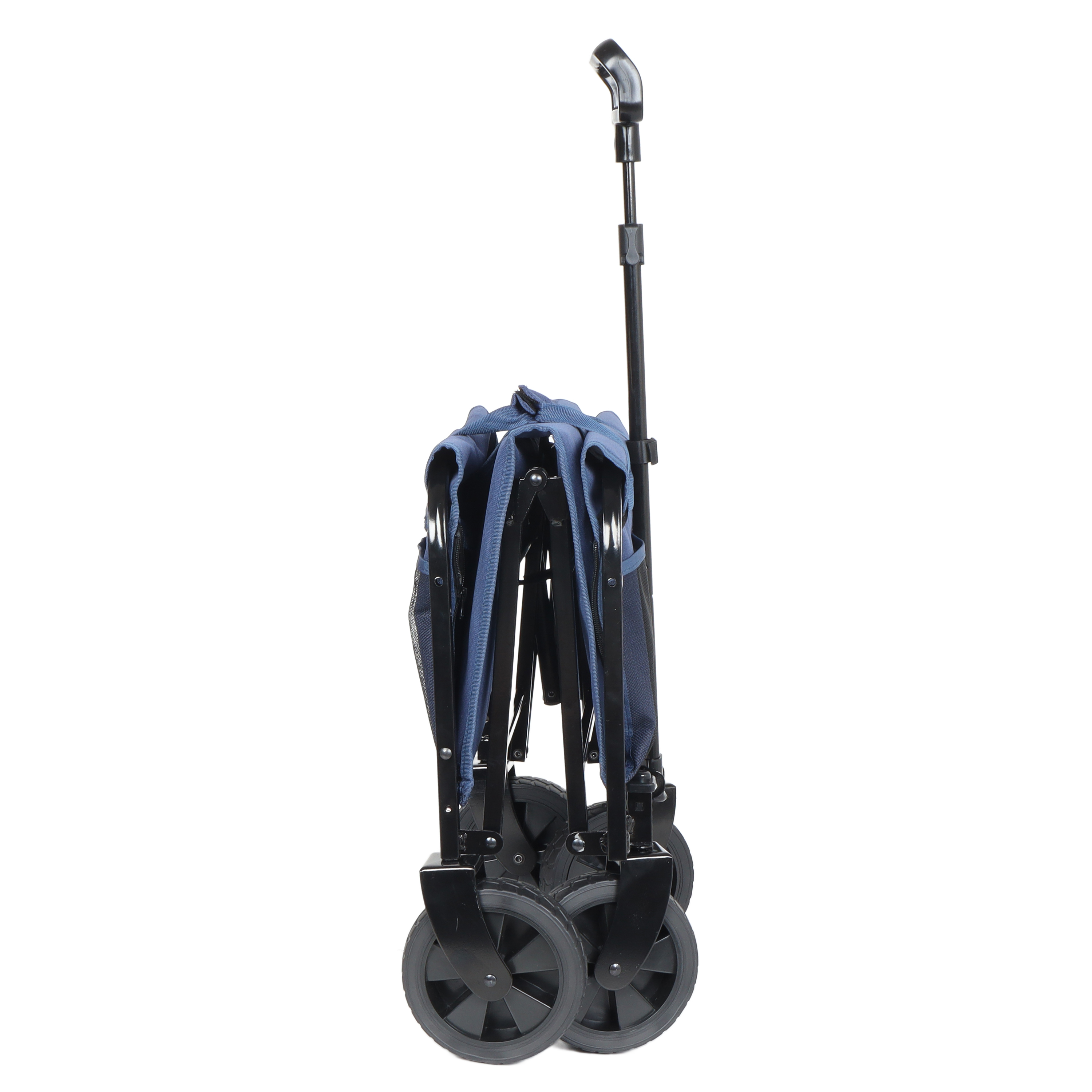 Product Name:All-in-One Convertible Folding 4-Wheel Trolley with Bench Seat and Dog Leash - Heavy Duty Foldable Utility Trolley for Camping, Beach, Shopping - Versatile Seating and Storage Space, dark blue