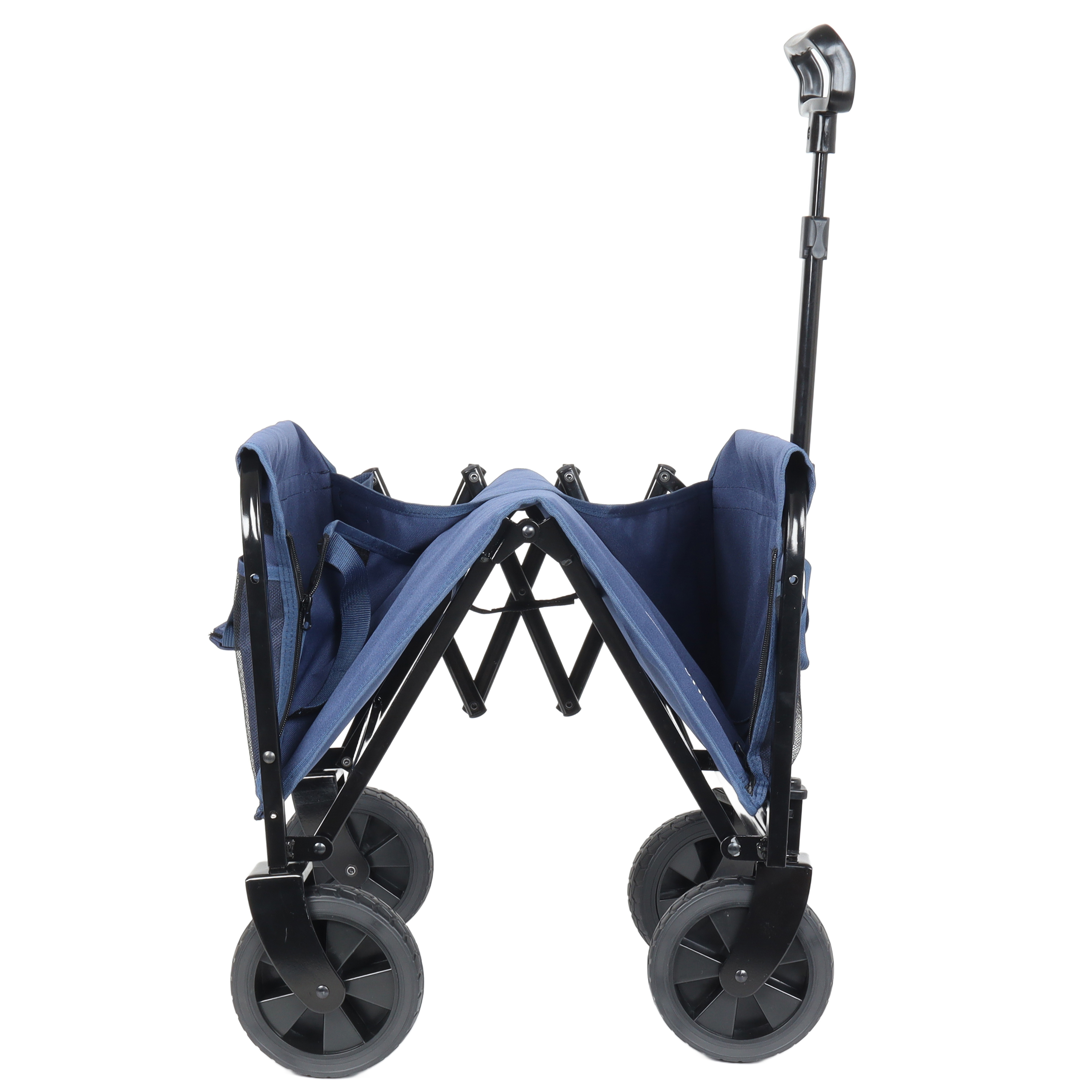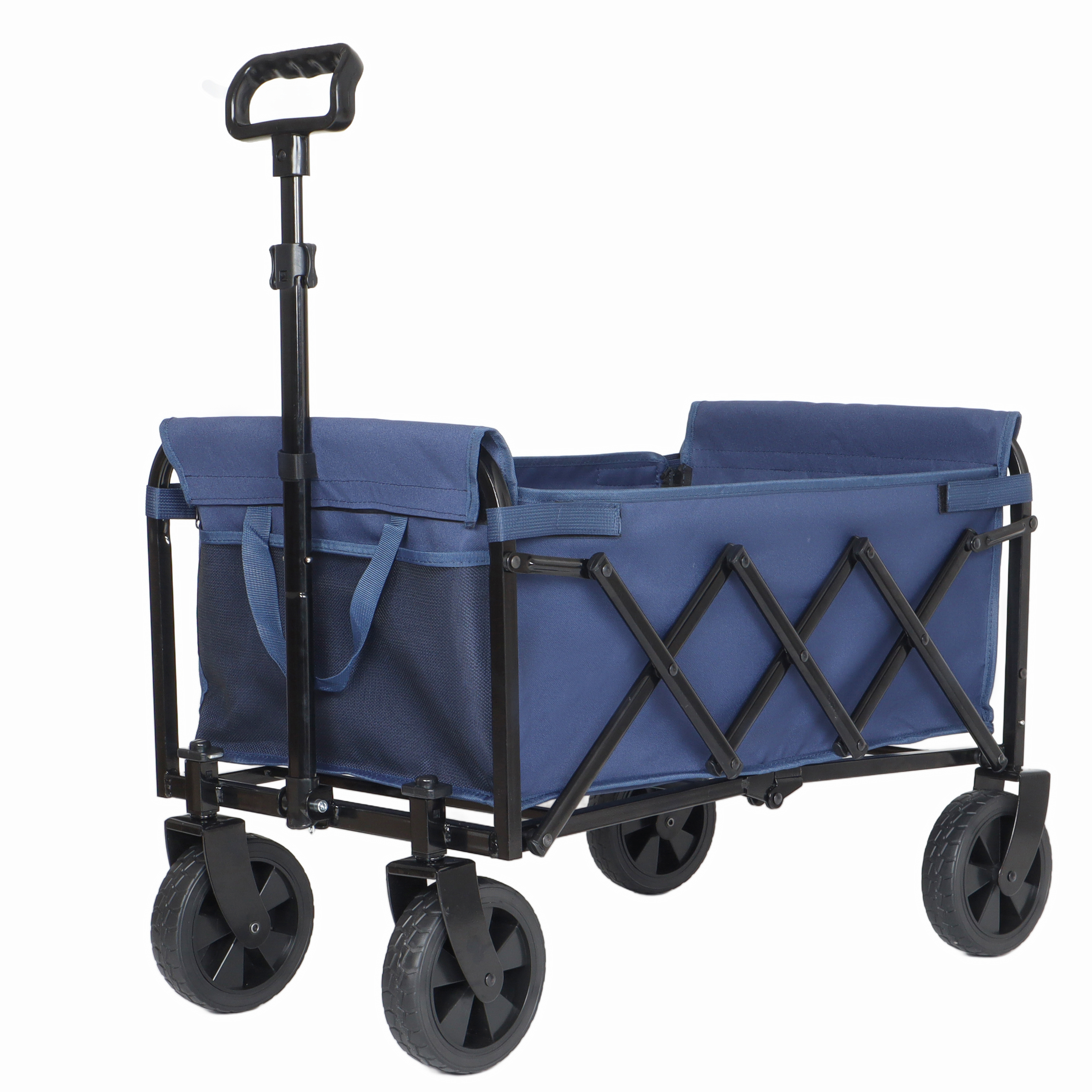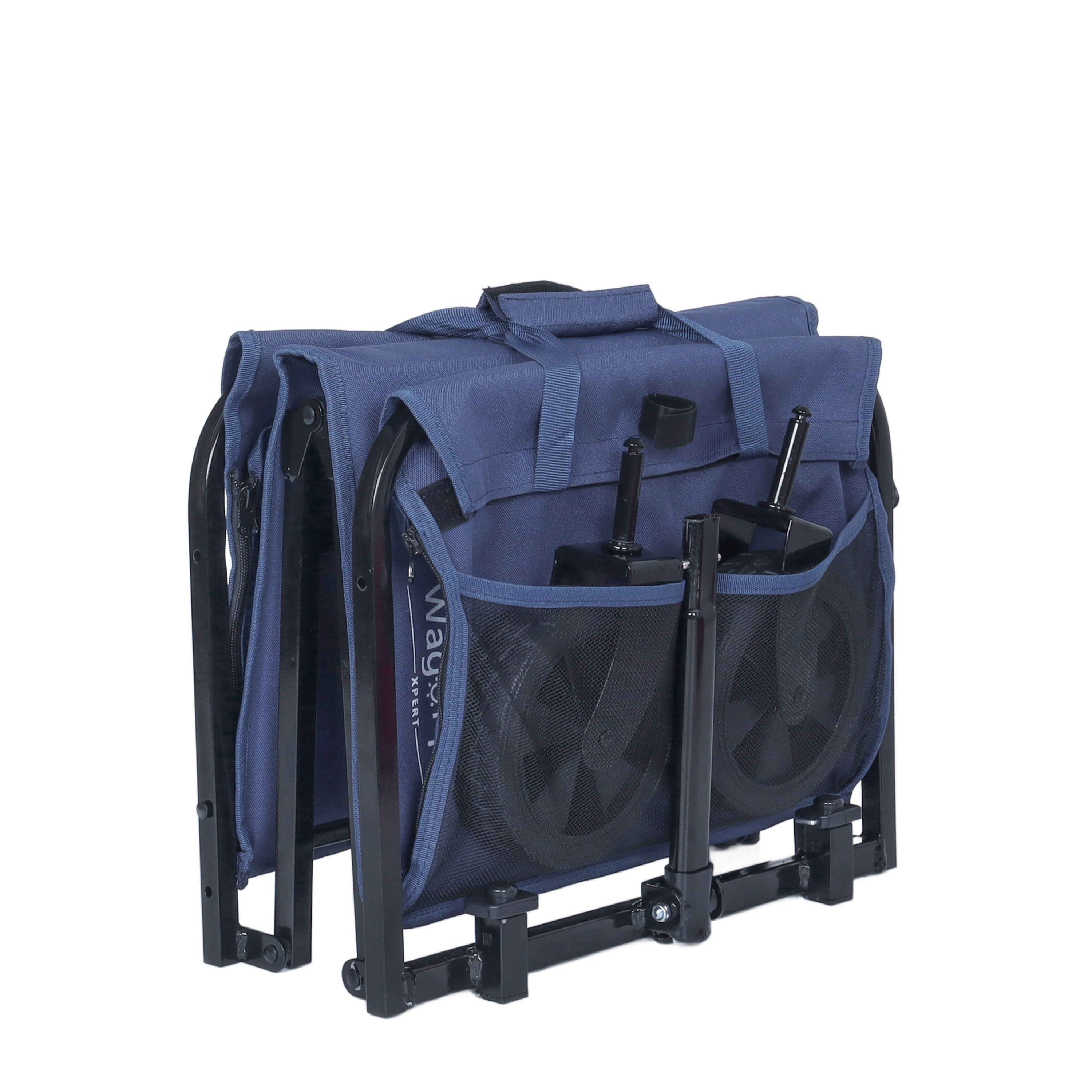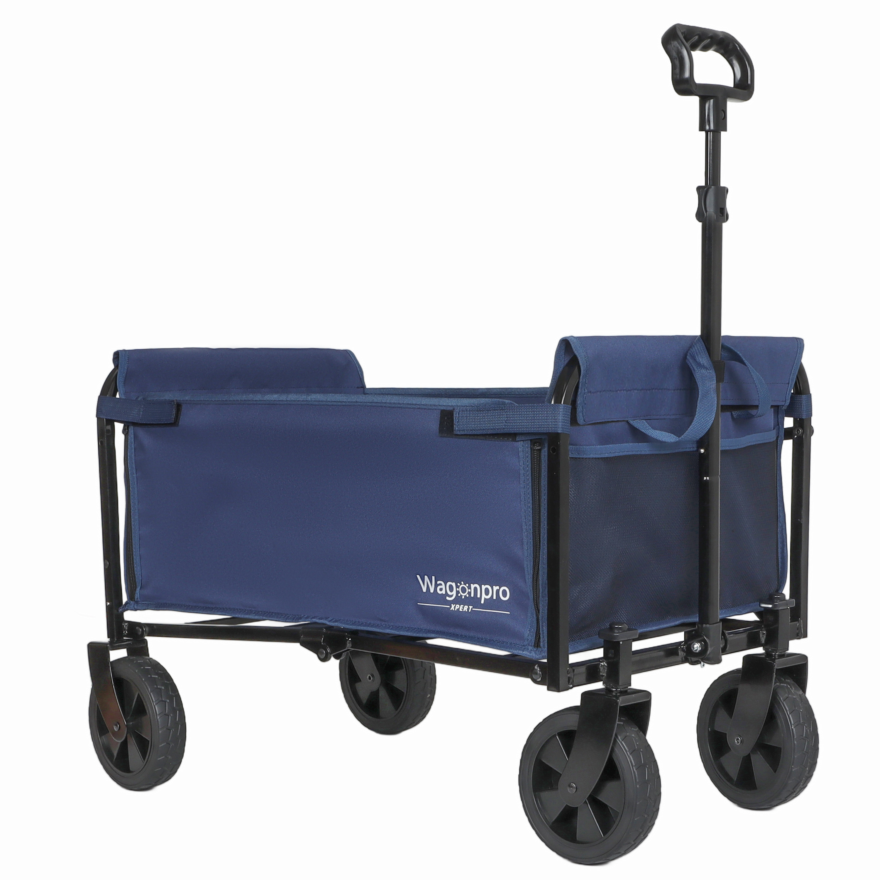 Product Name:All-in-One Convertible Folding 4-Wheel Trolley with Bench Seat and Dog Leash - Heavy Duty Foldable Utility Trolley for Camping, Beach, Shopping - Versatile Seating and Storage Space, dark blue