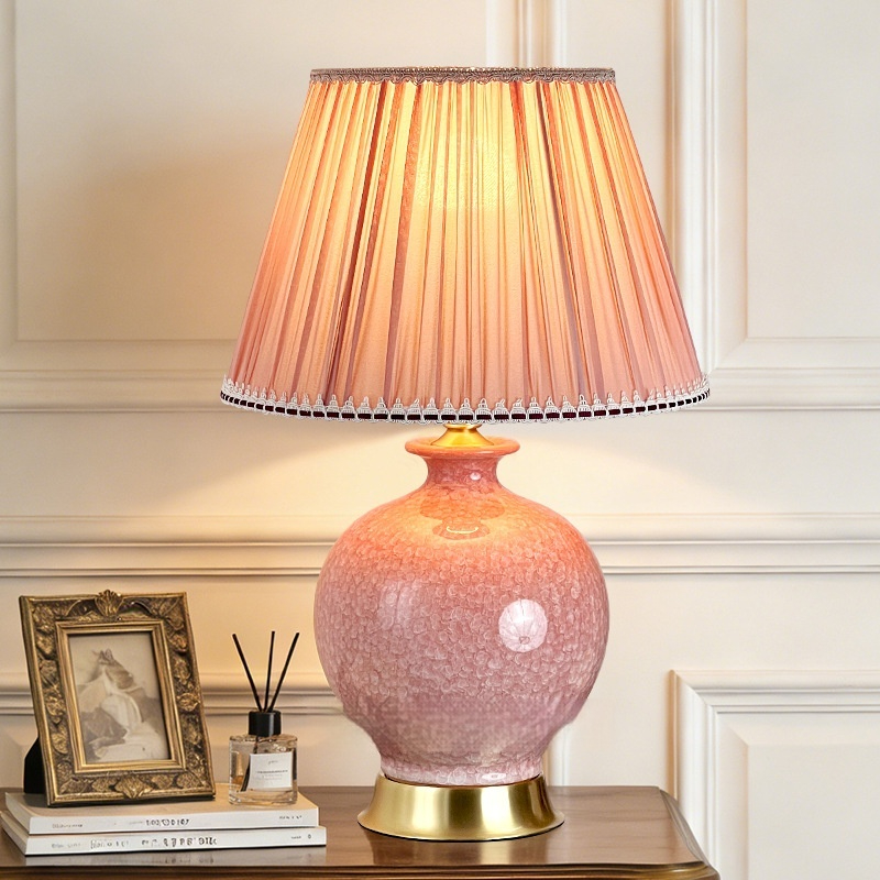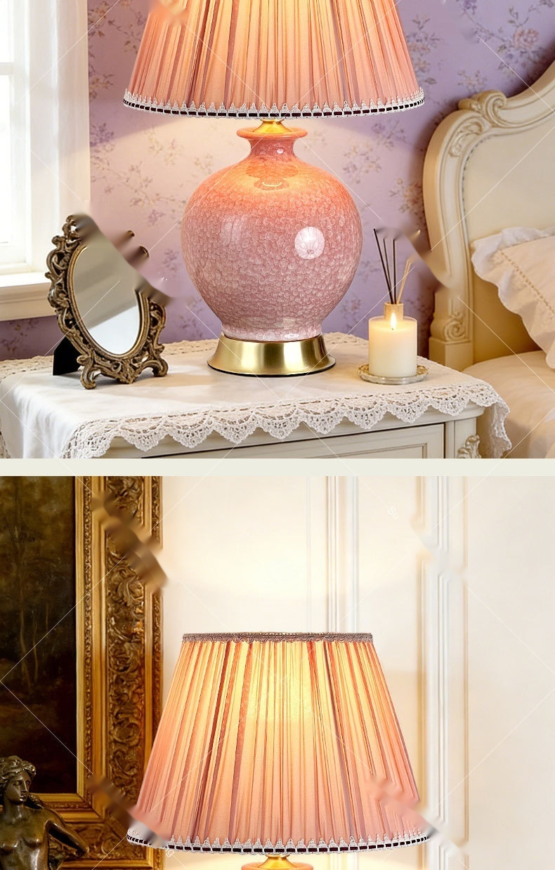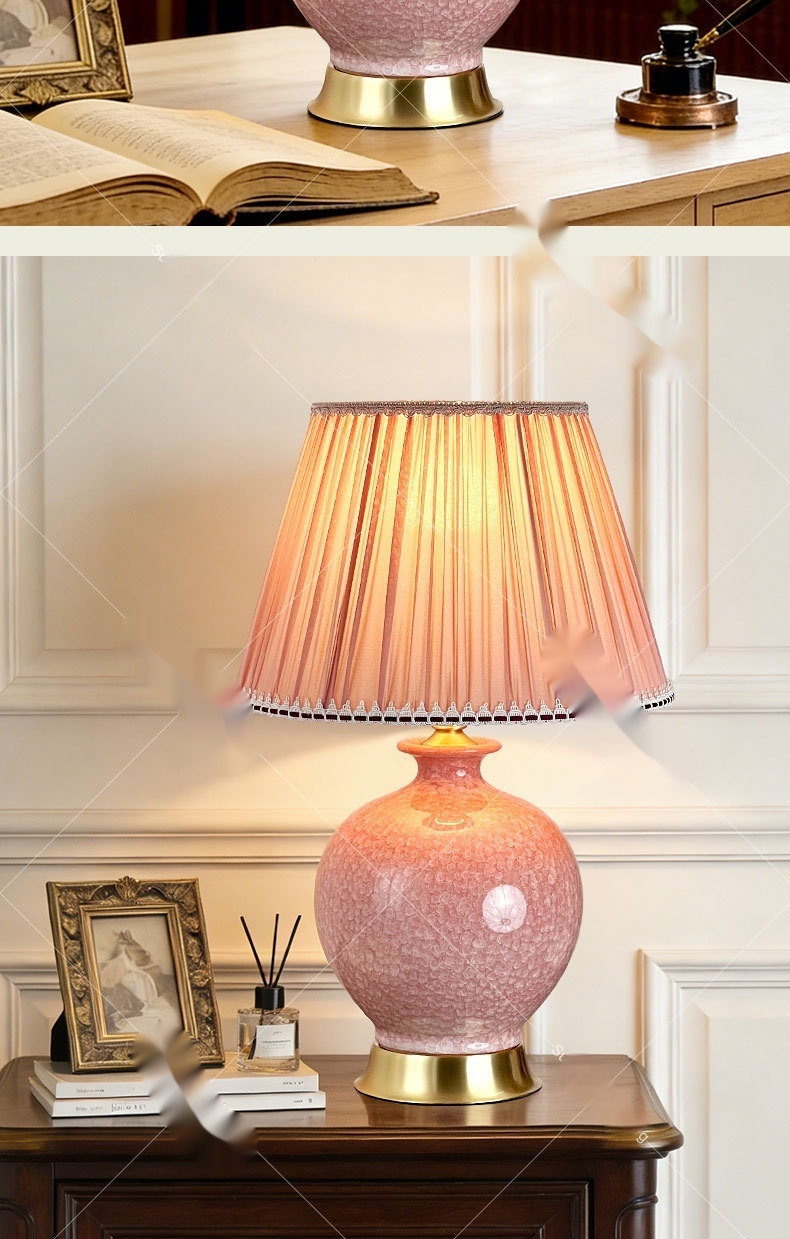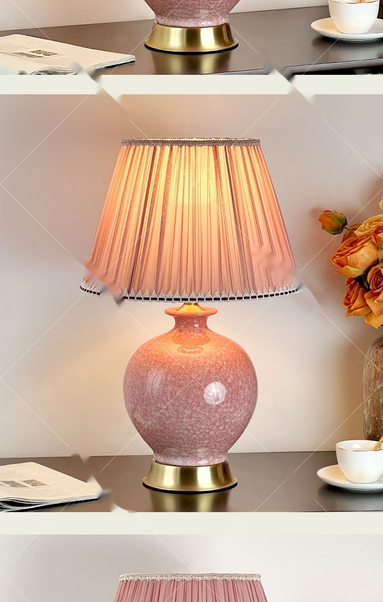 Dimensions: Ice-flower ceramic table lamp, pink light, thickened lampshade 6058