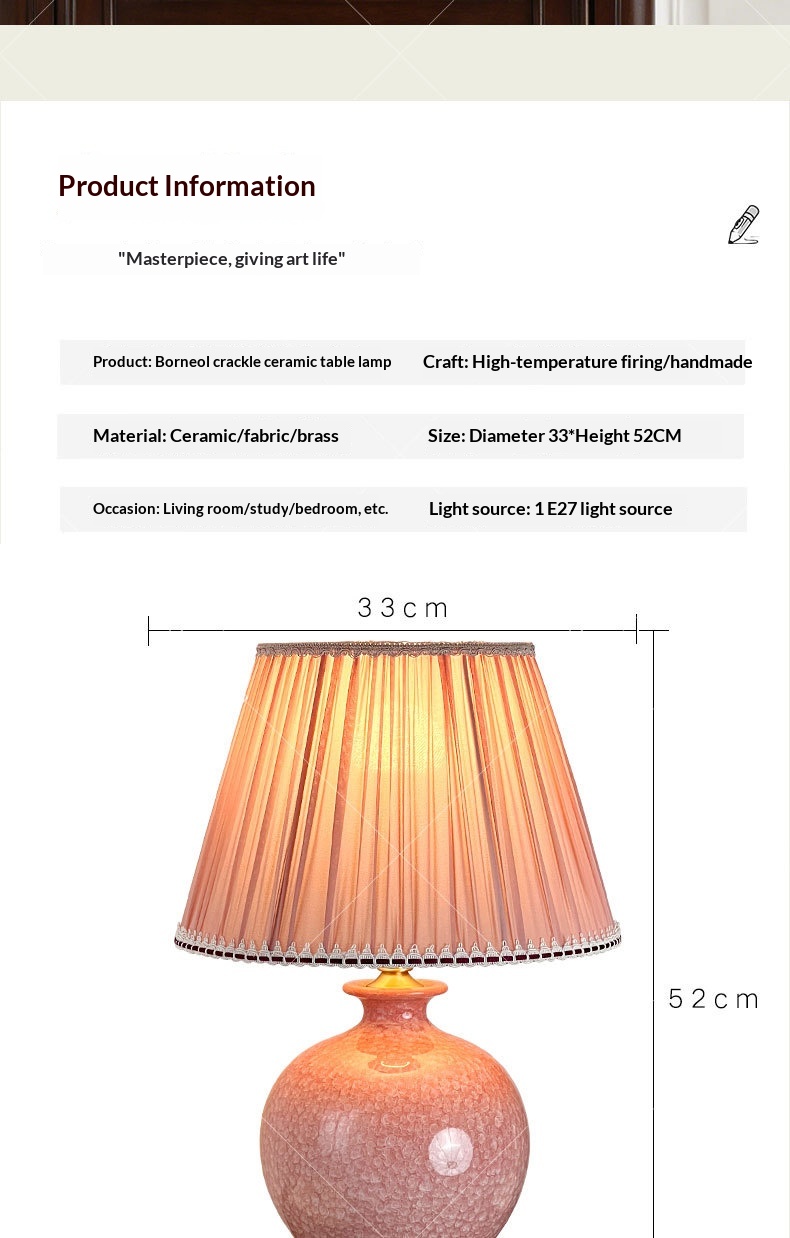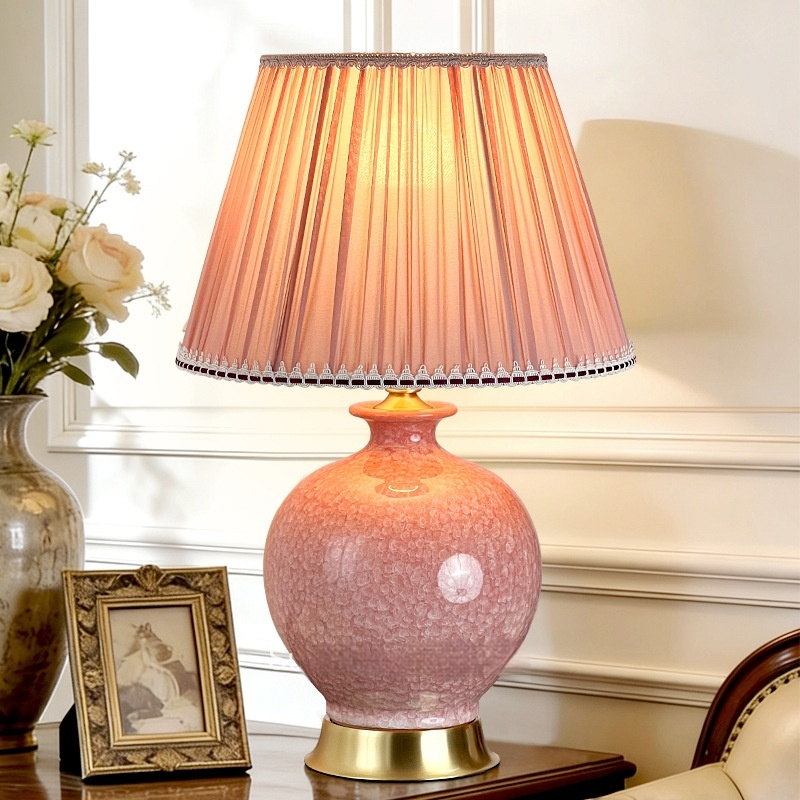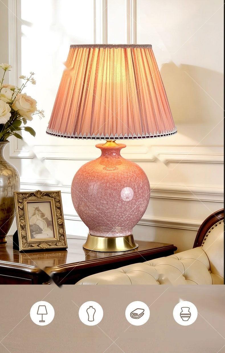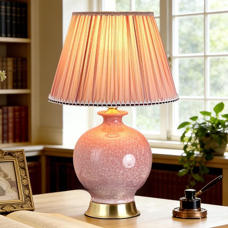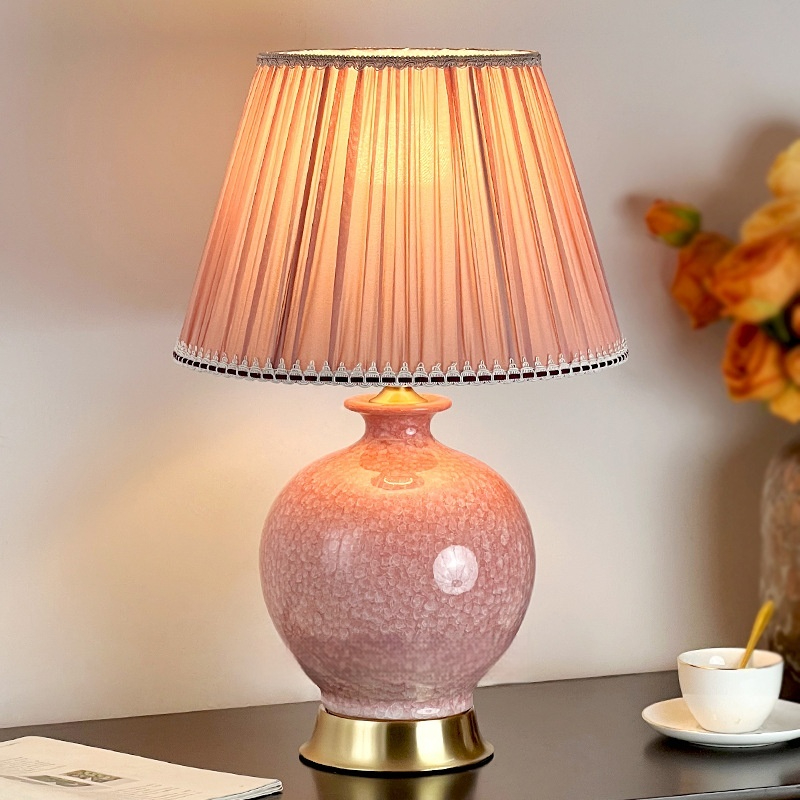 Dimensions: Ice-flower ceramic table lamp, pink light, thickened lampshade 6058
