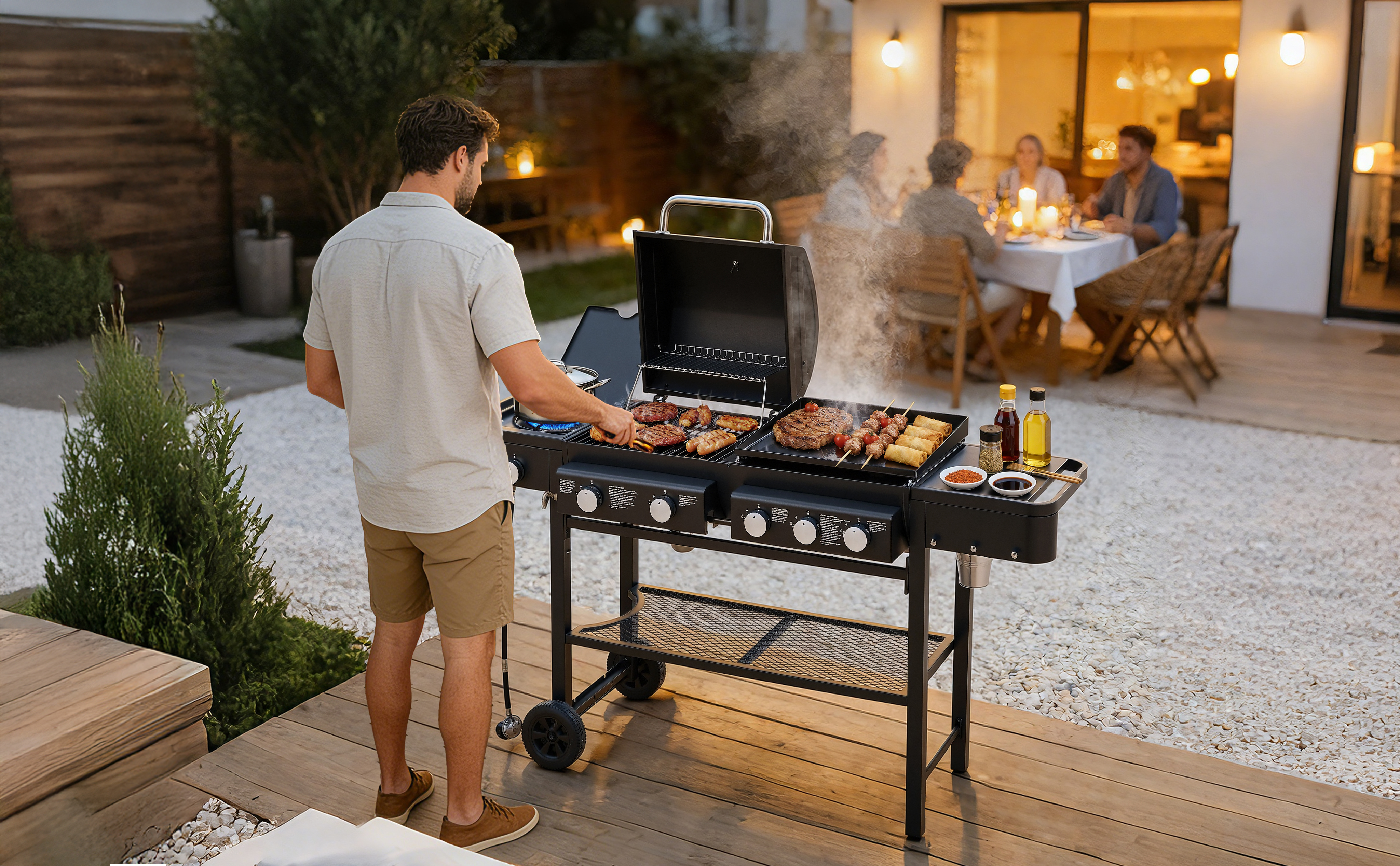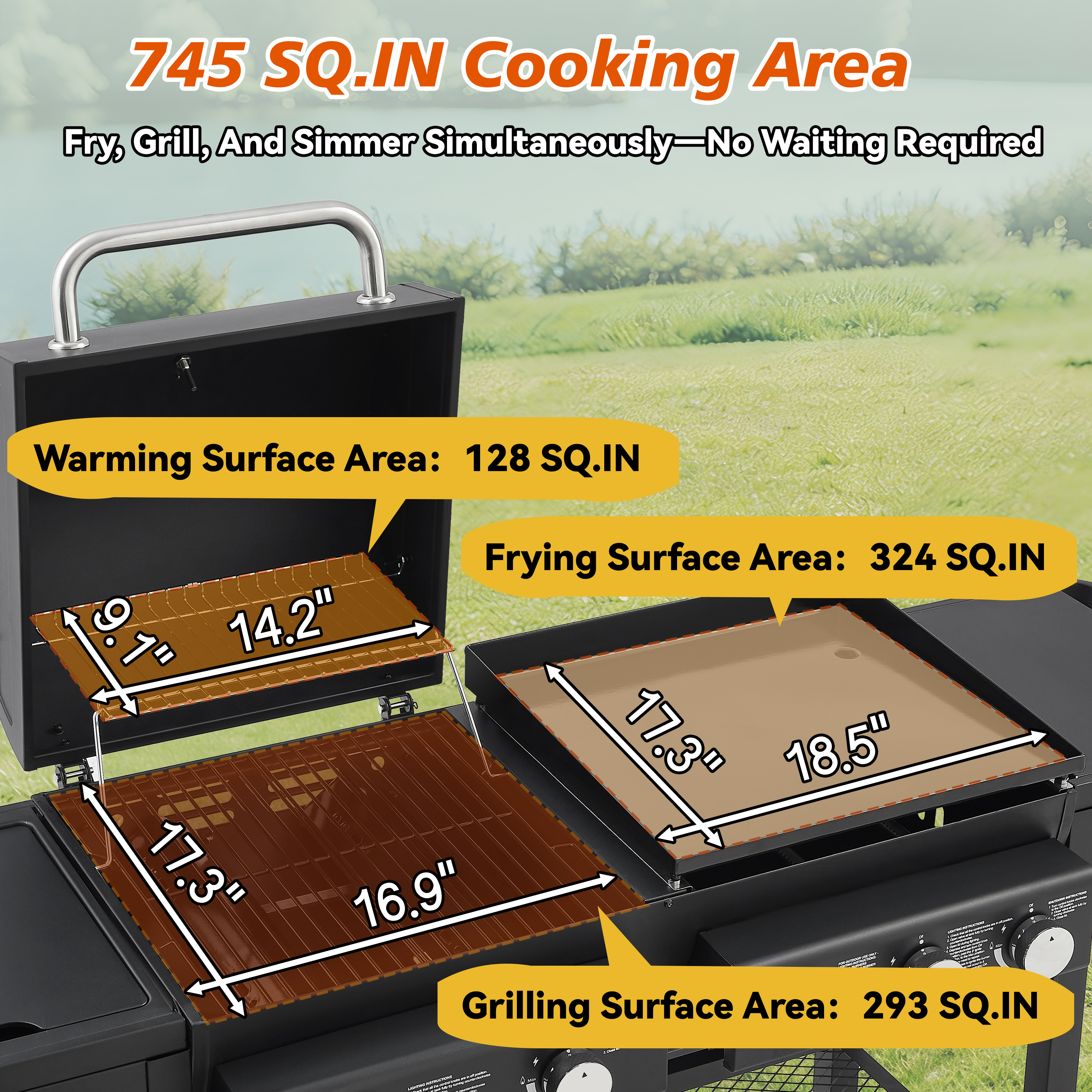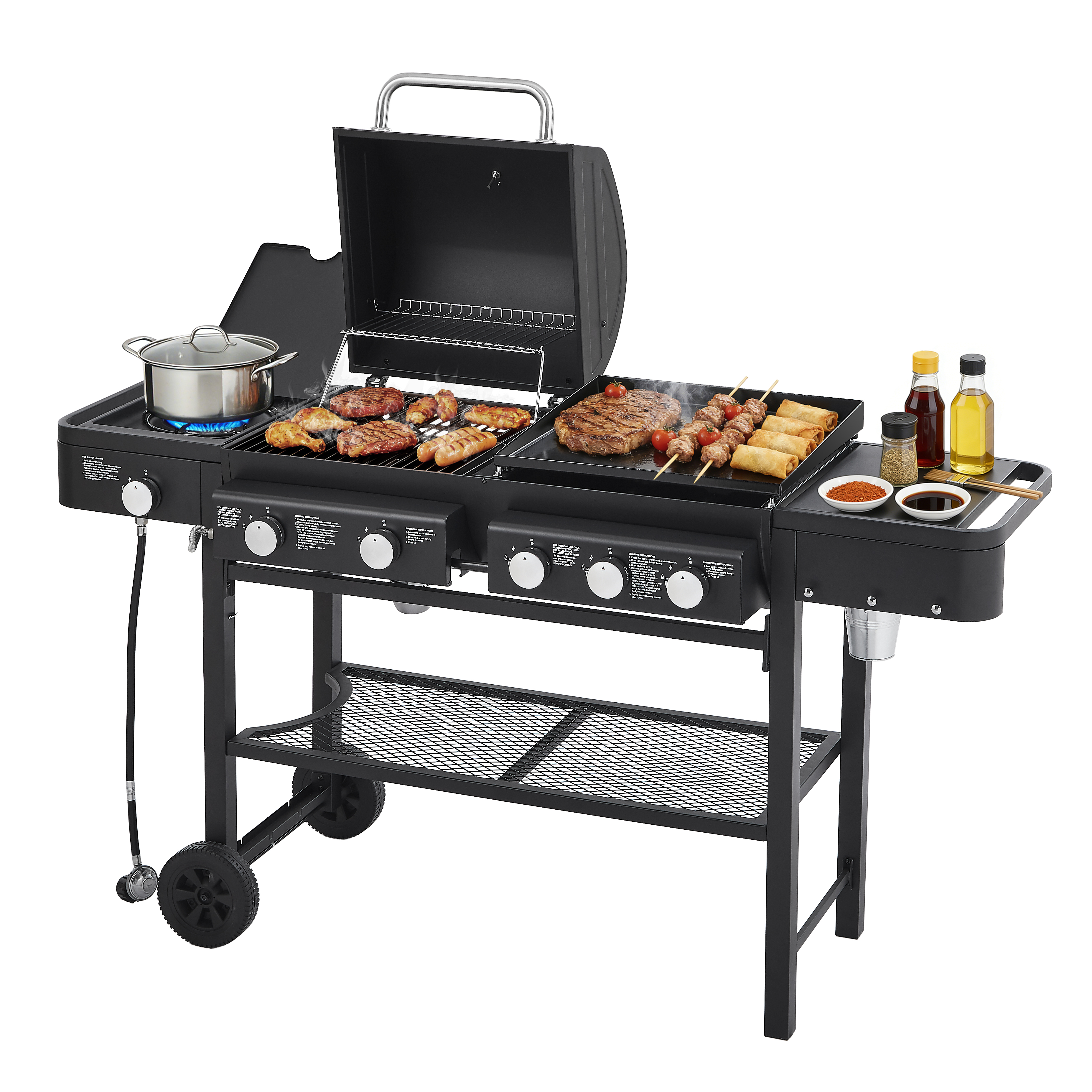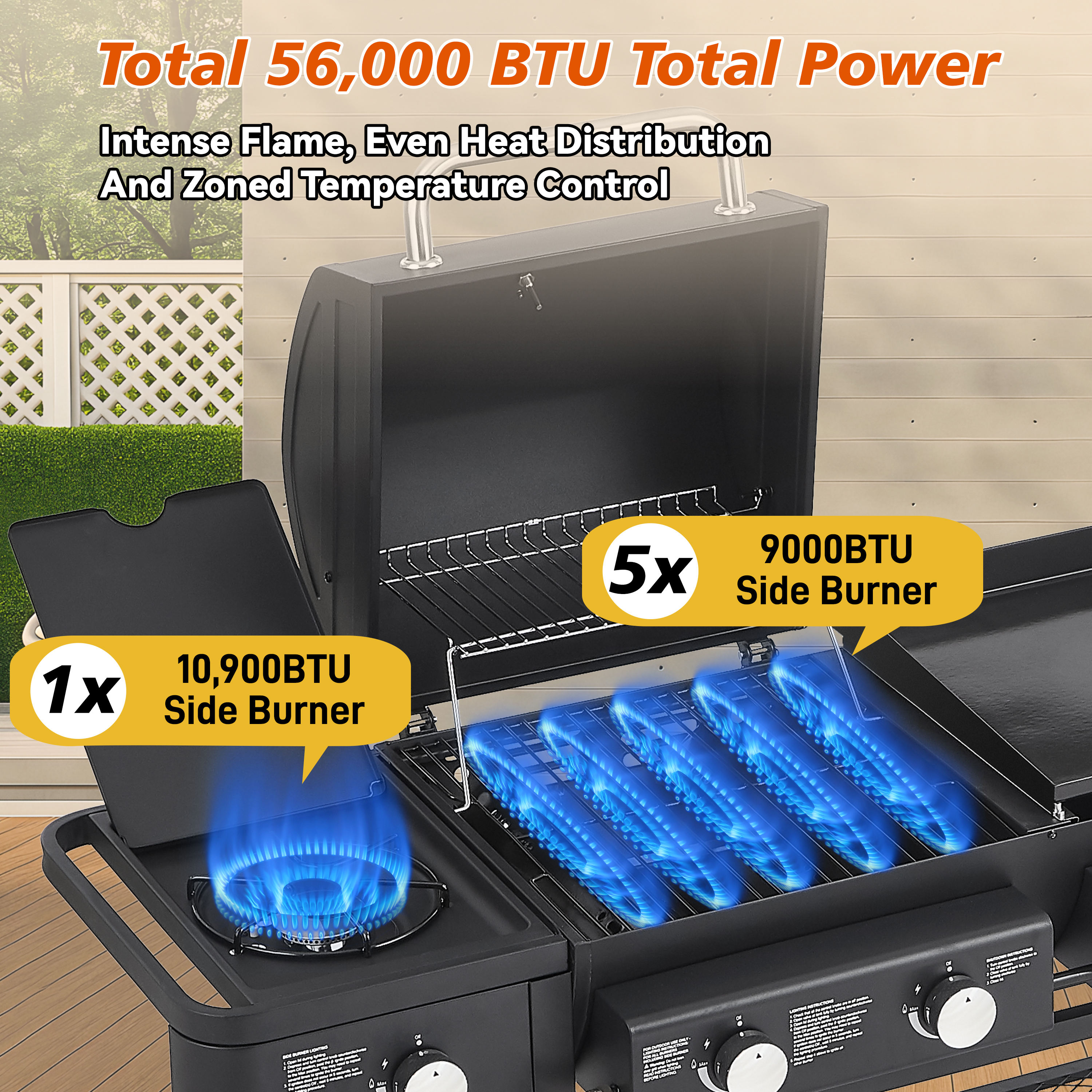 Product Name:All-in-One Propane Gas Grill with Grilling & Griddling Functions, 745 Sq.Inch Cooking Space, 5 Burners, 56000 BTU Propane Grill, Heavy-Duty Stand for Backyard Barbecue & Outdoor Cooking