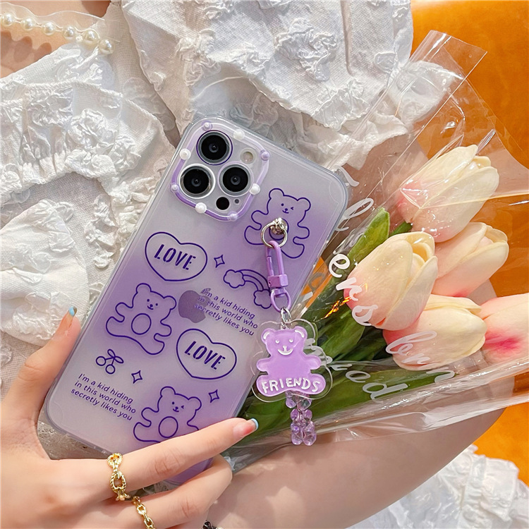 All Inclusive Soft Shell For IP 12pro 13 Purple Bear Pendant
