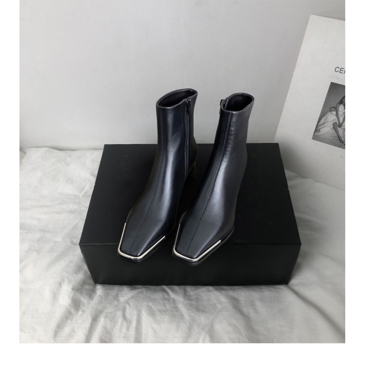 Wearing style: side zipper upper material: cowhide