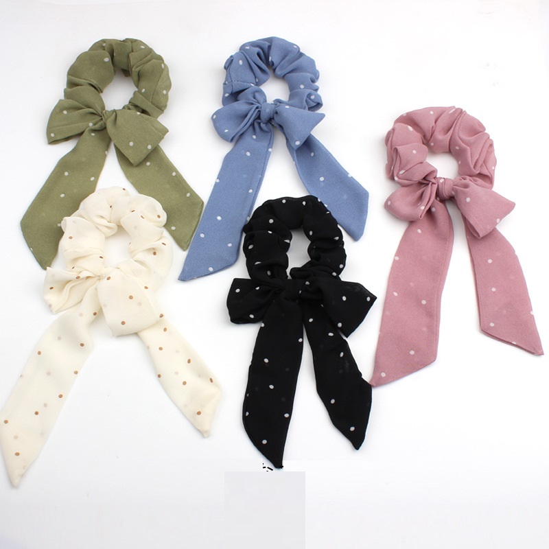All-match And Cute Bow Ribbon Small Polka Dot Chiffon Ponytail Released Circle Head Accessories