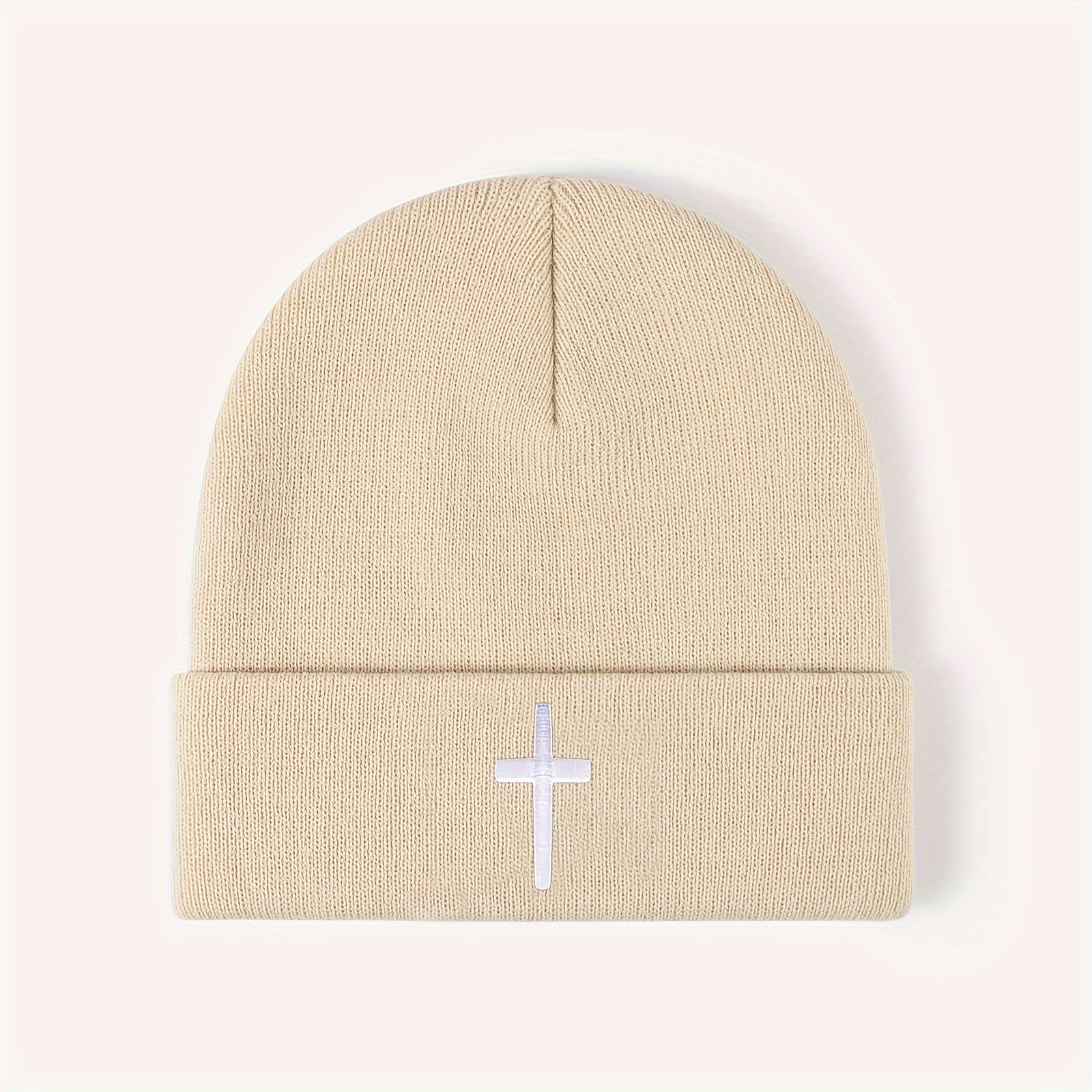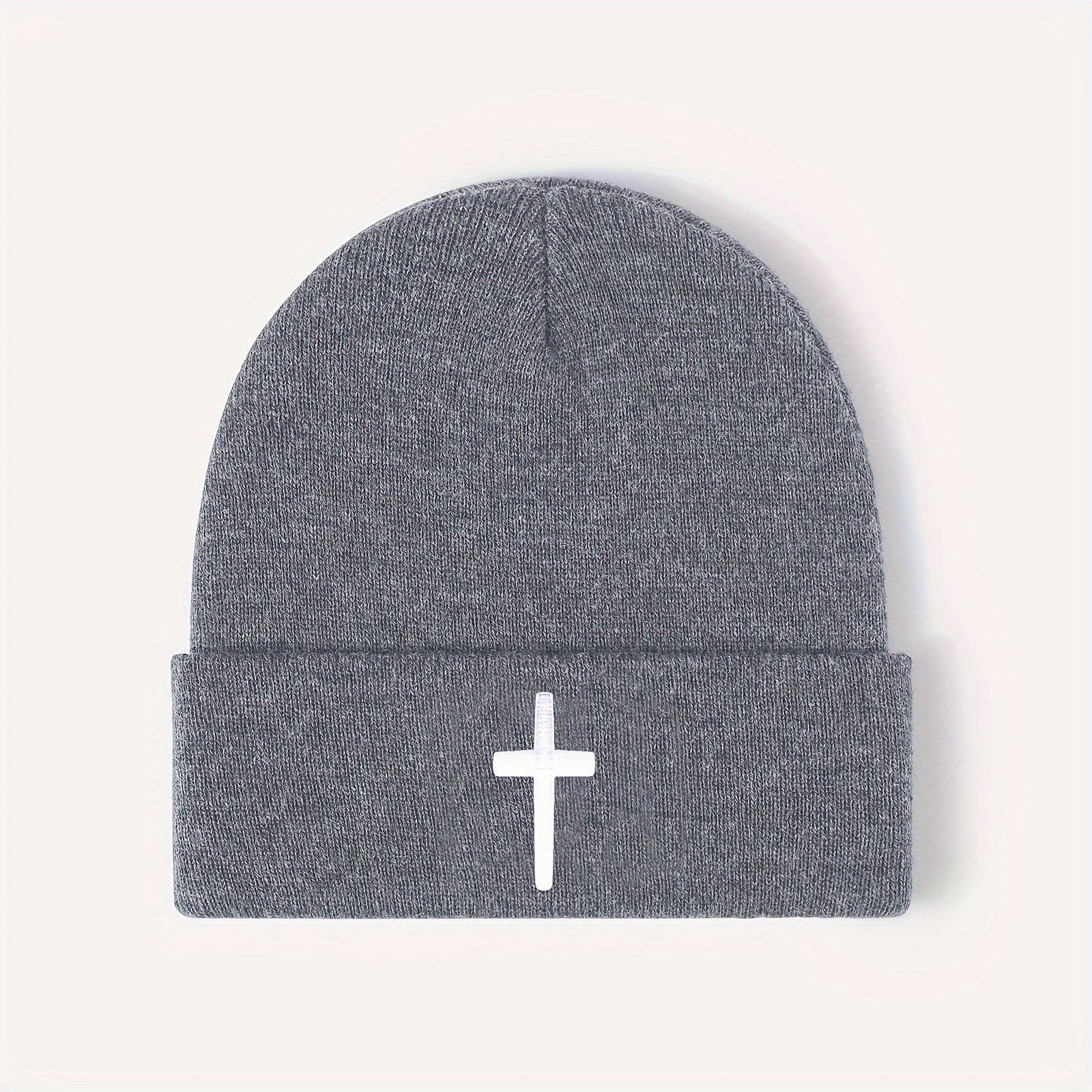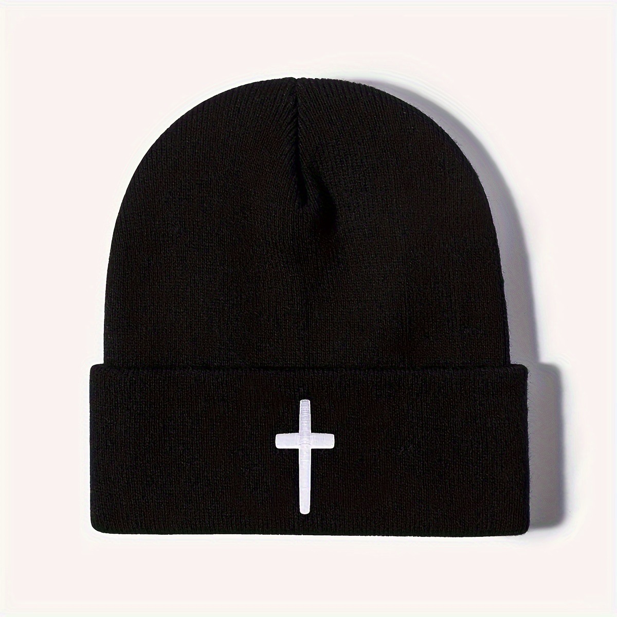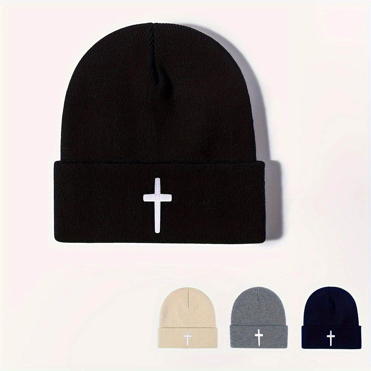 Color: embroidery cross knitted hat-black, embroidery cross knitted hat-gray, embroidery cross knitted hat-beige, embroidery cross knitted hat-navy blue