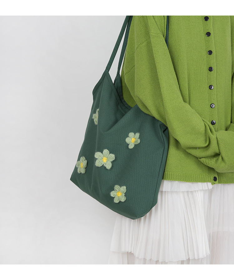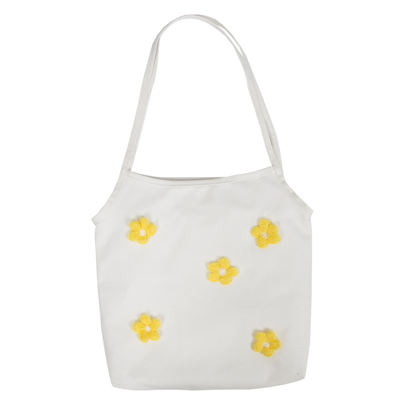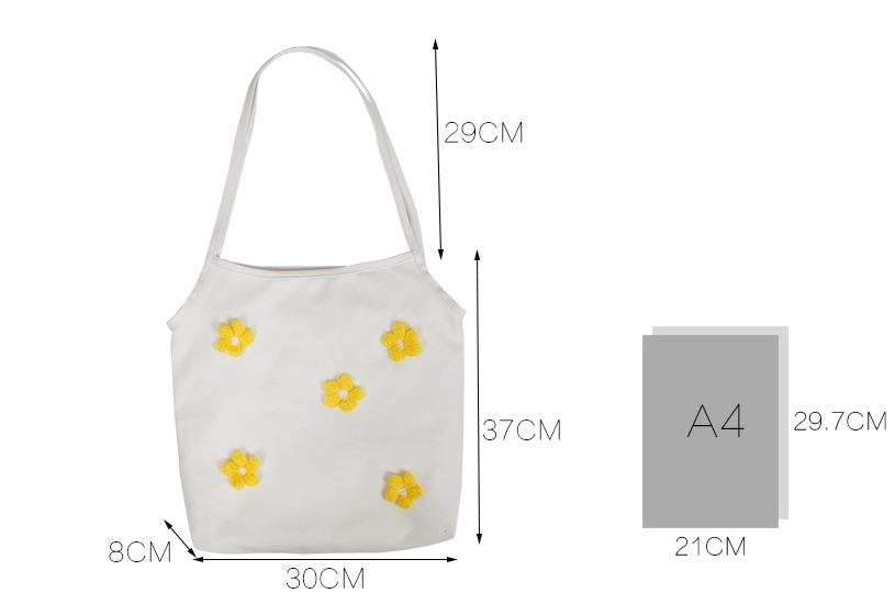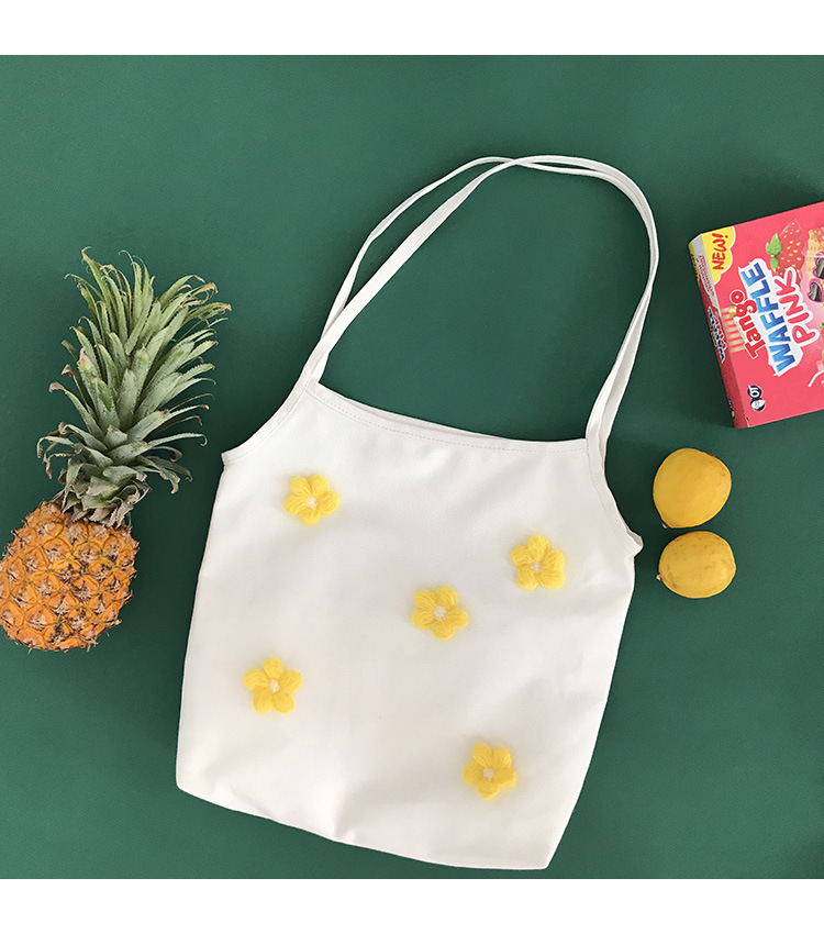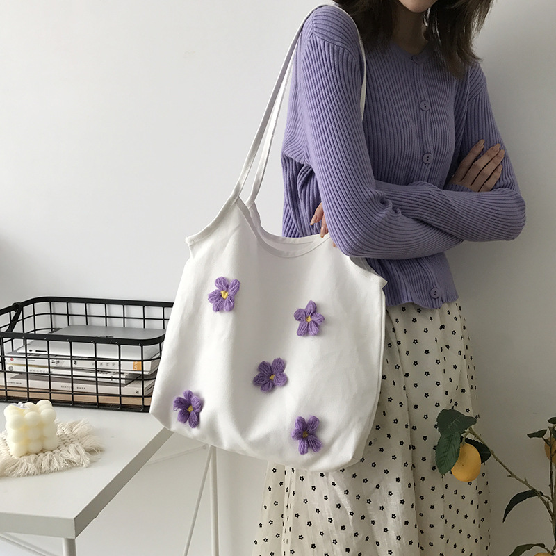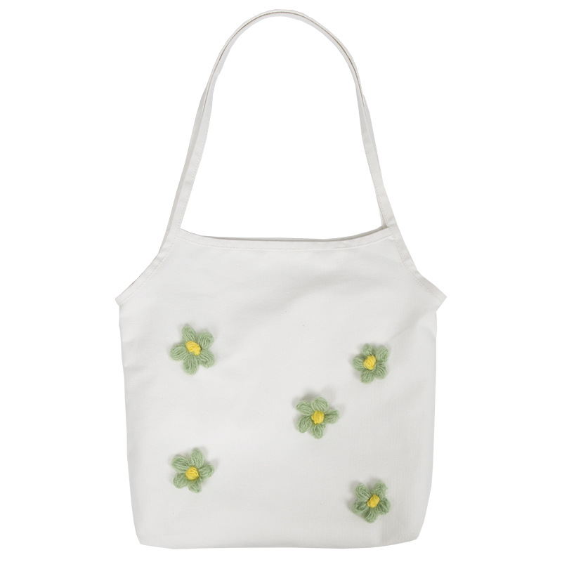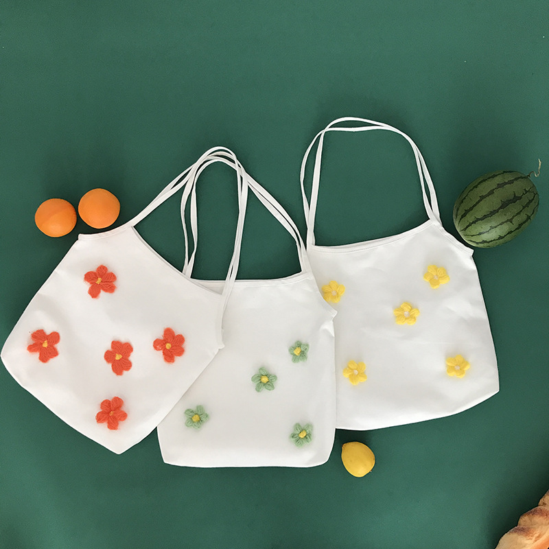 Color: Purple bag white flower, white bag orange flower, white bag green flower, yellow bag white flower, white bag yellow flower, green bag green flower, white bag purple flower