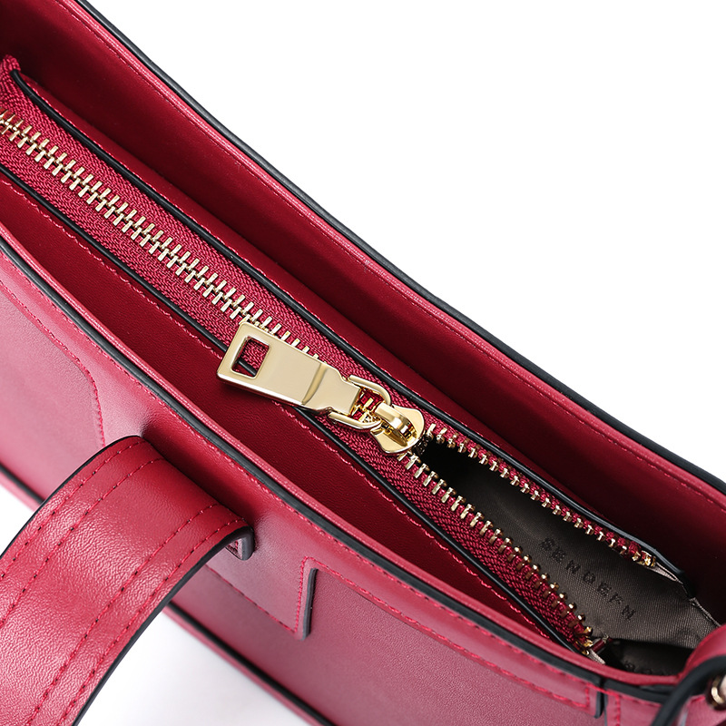 Leather features: two-layer cowhideFashion bag style: baguette bagLining texture: polyester