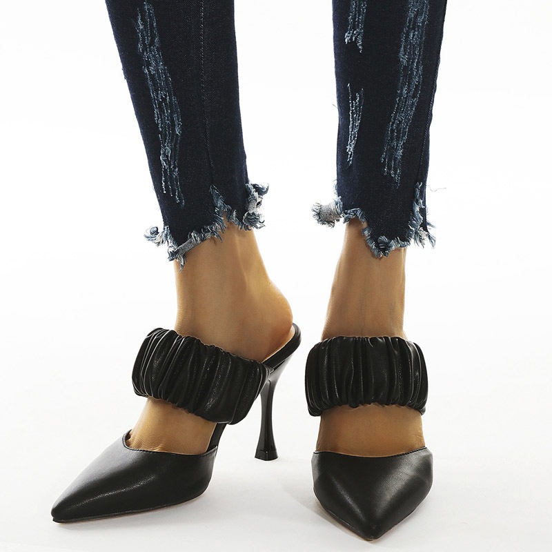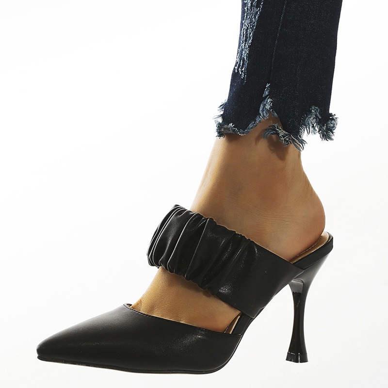 All-match Pointed-toe Stiletto High-heeled Baotou Half Slippers