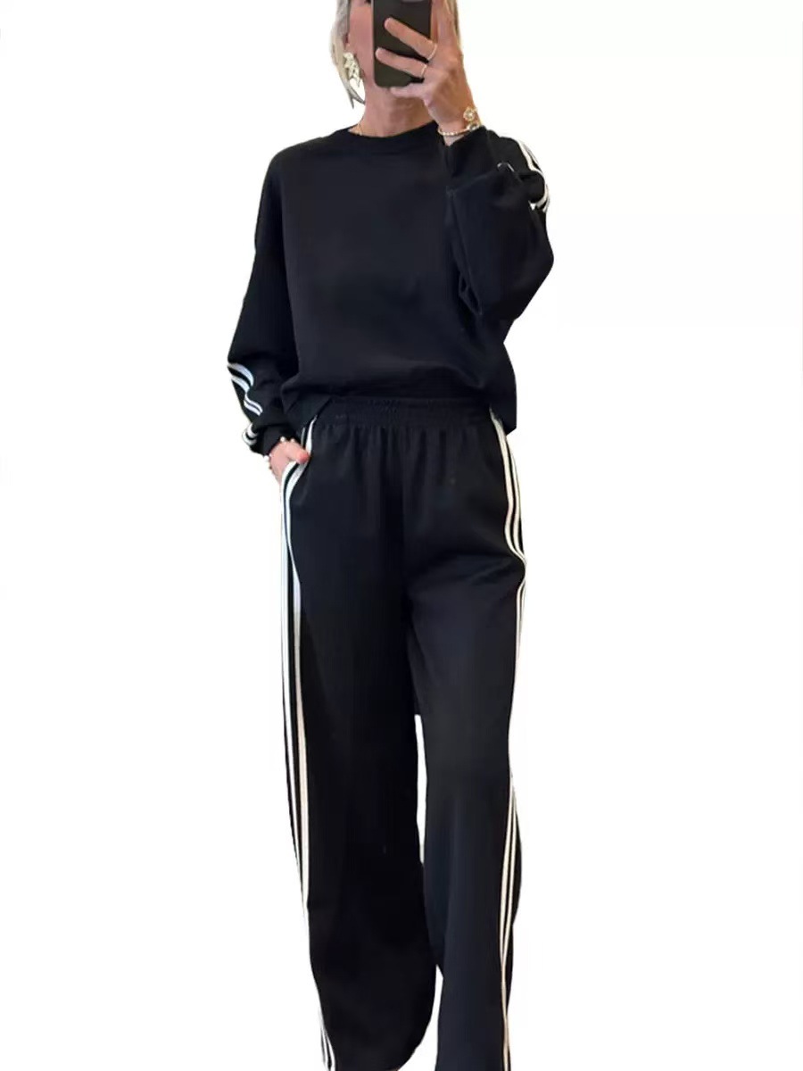 All-match Side Striped Casual Suit Pocket Two-piece Set