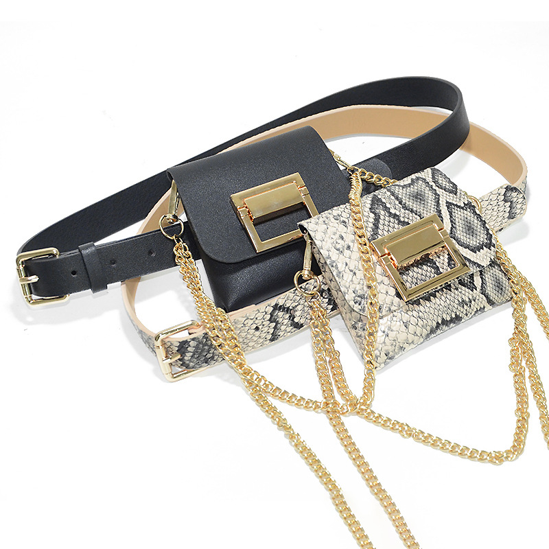 All-match Snake Pattern Shoulder Bag Decorative Belt