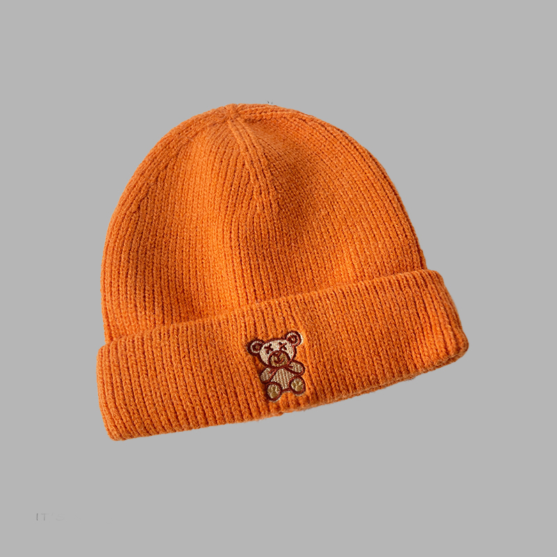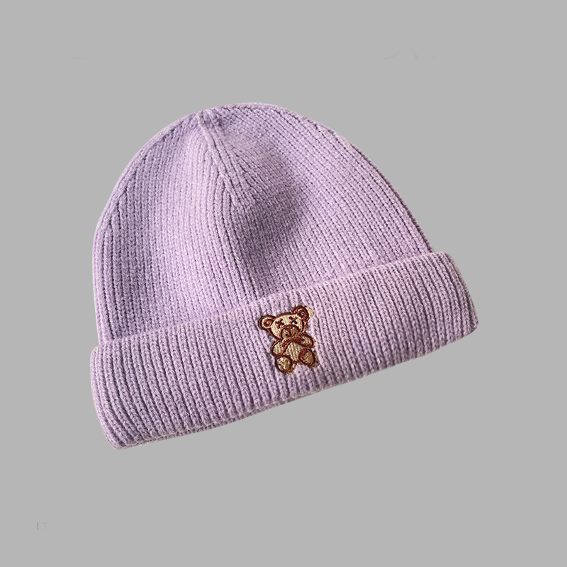 All-match Solid Color Cute Bear Knitted Woolen Hat
