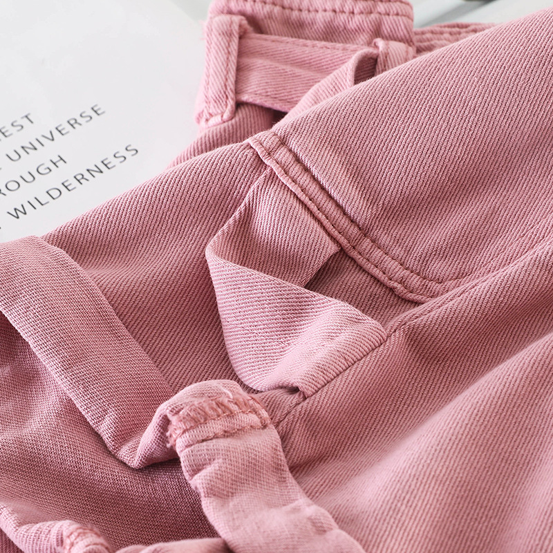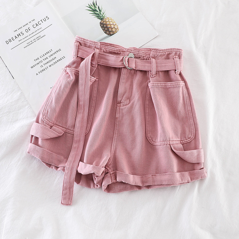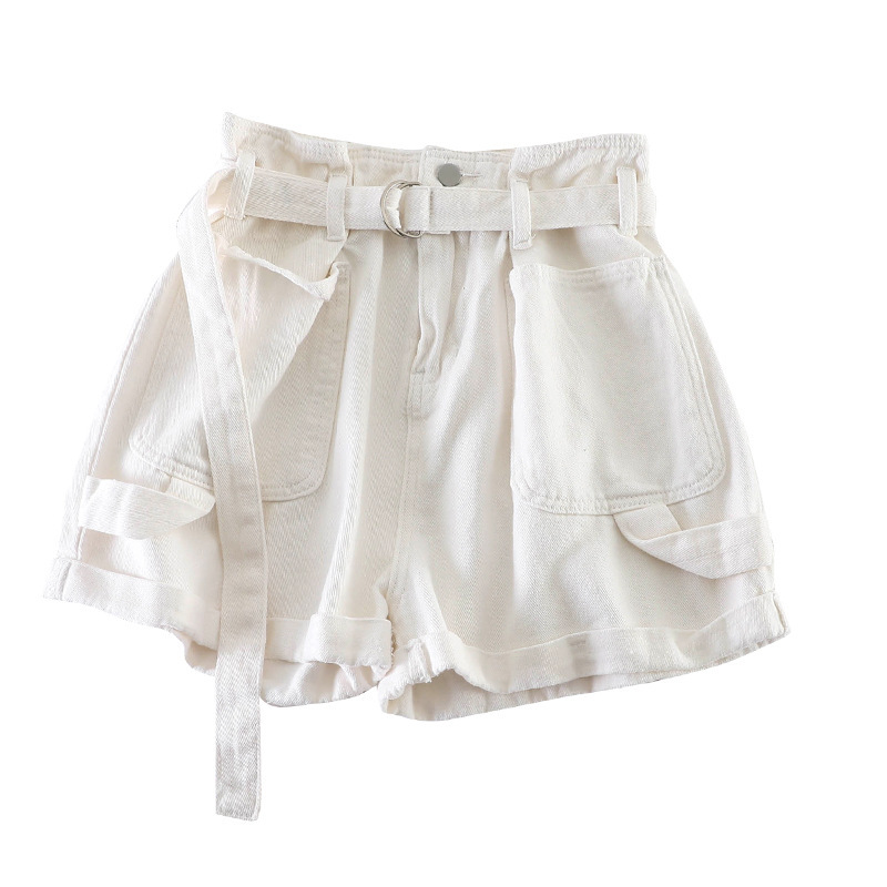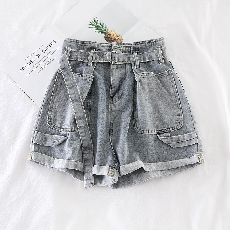 All Match Thin Double Pocket Wide Leg Denim Solid Color Shorts