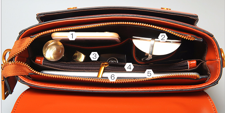 The internal structure of the bag: zipper pocket, mobile phone bag, document bag, sandwich zipper bag