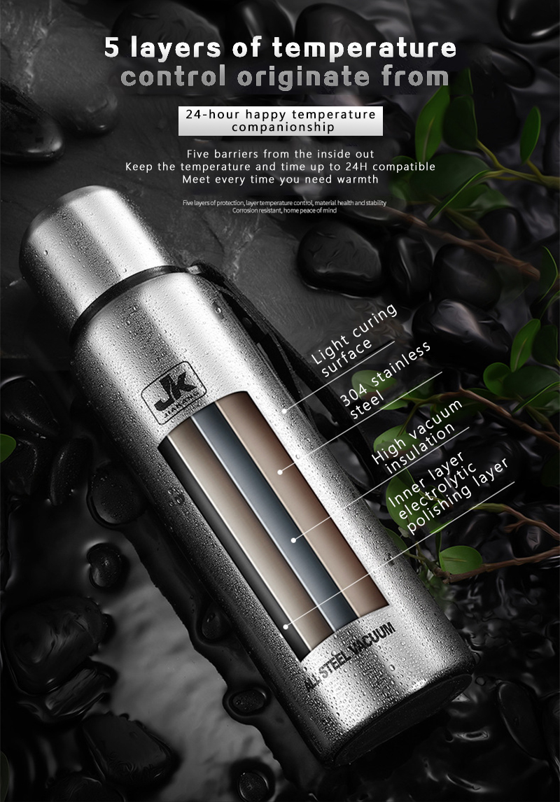 All steel 1000ml: height 29.5cm, diameter 8.5cm