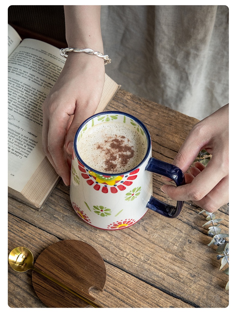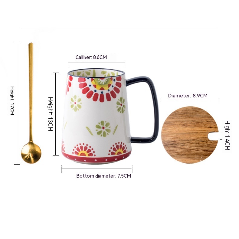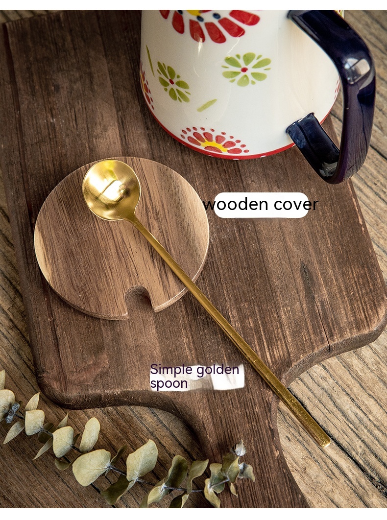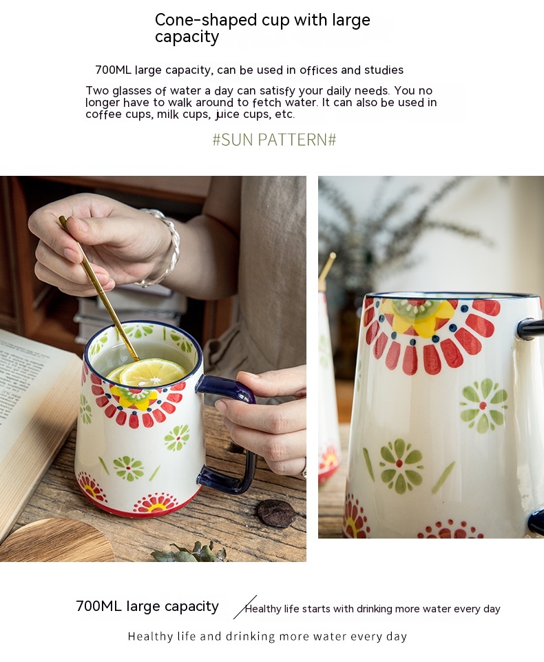 Color: hand painted conical cup-sunflower, hand painted conical cup-sunflower with cover spoon