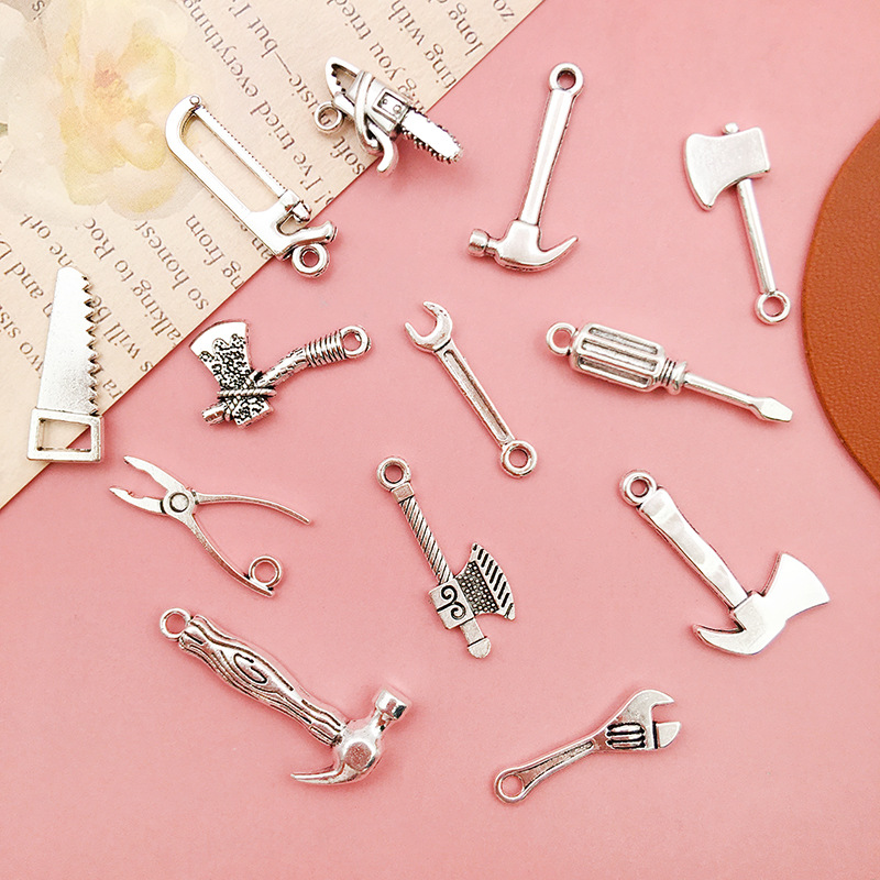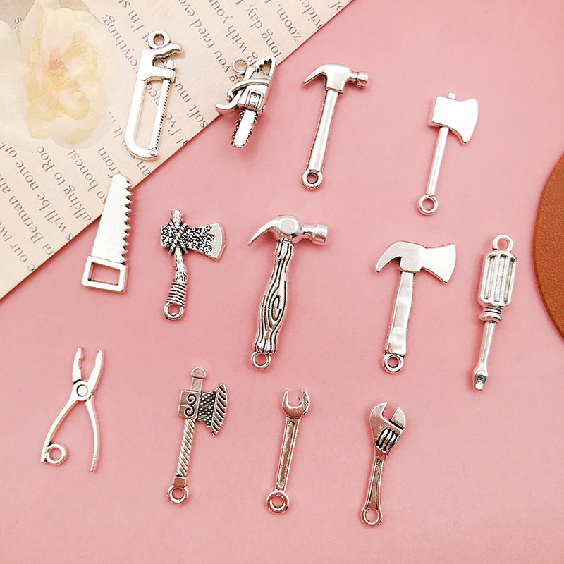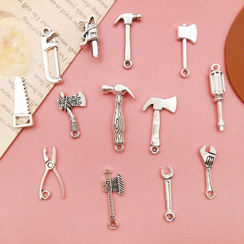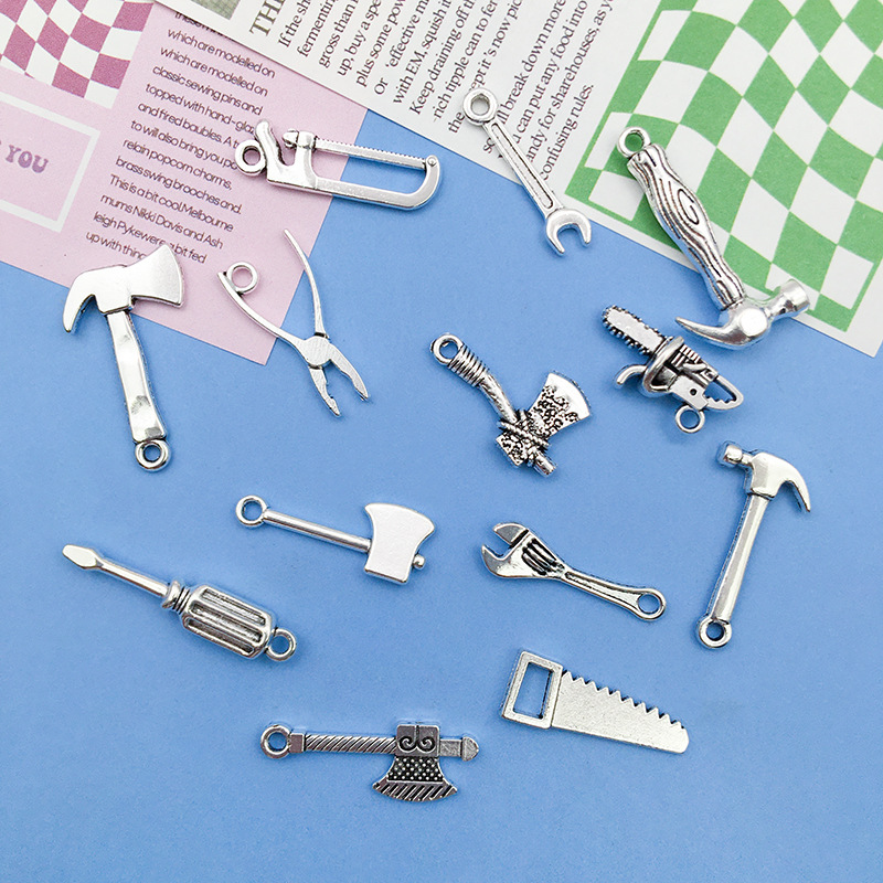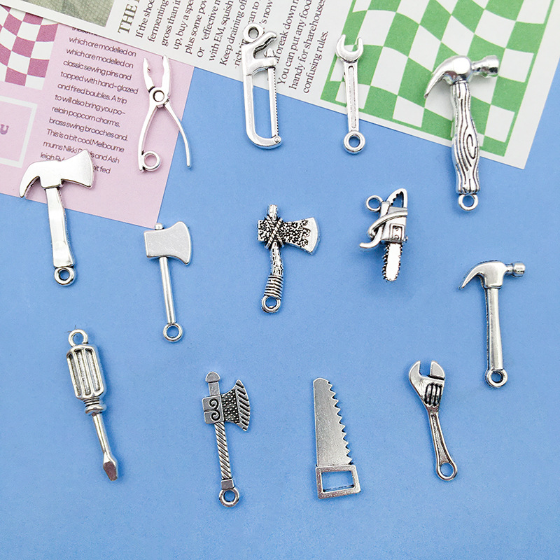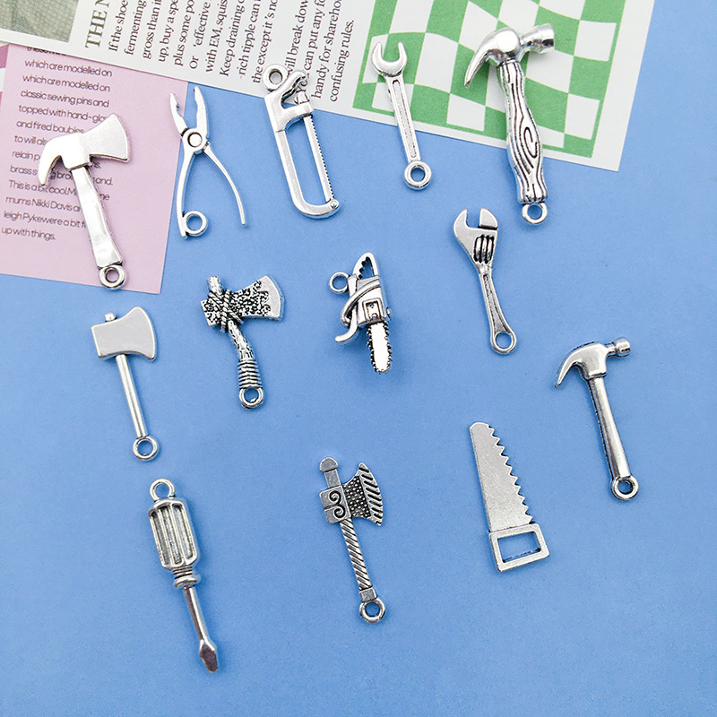 Color: 5274-0.75g7x24 wrench, 8520-1.62g16x26 axe, 8521-1. 15g13x25 electric hammer, 8552-1.89g6x31 screwdriver, 8523-0. 51g6x24 wrench, 8524-1.12 g9x23 saw, 8525-1.1 g7x26 saw, 8527-0. 8g11x24 pliers, 11183-1.2 g9.4x25 antique silver axe, 15483-antique silver chainsaw 20x9-1.5g,15834-antique silver axe 26x9-1.1g,15835-antique silver manual axe 22x13-1.6g,15838-3.2 g15x30 antique sillver hammer