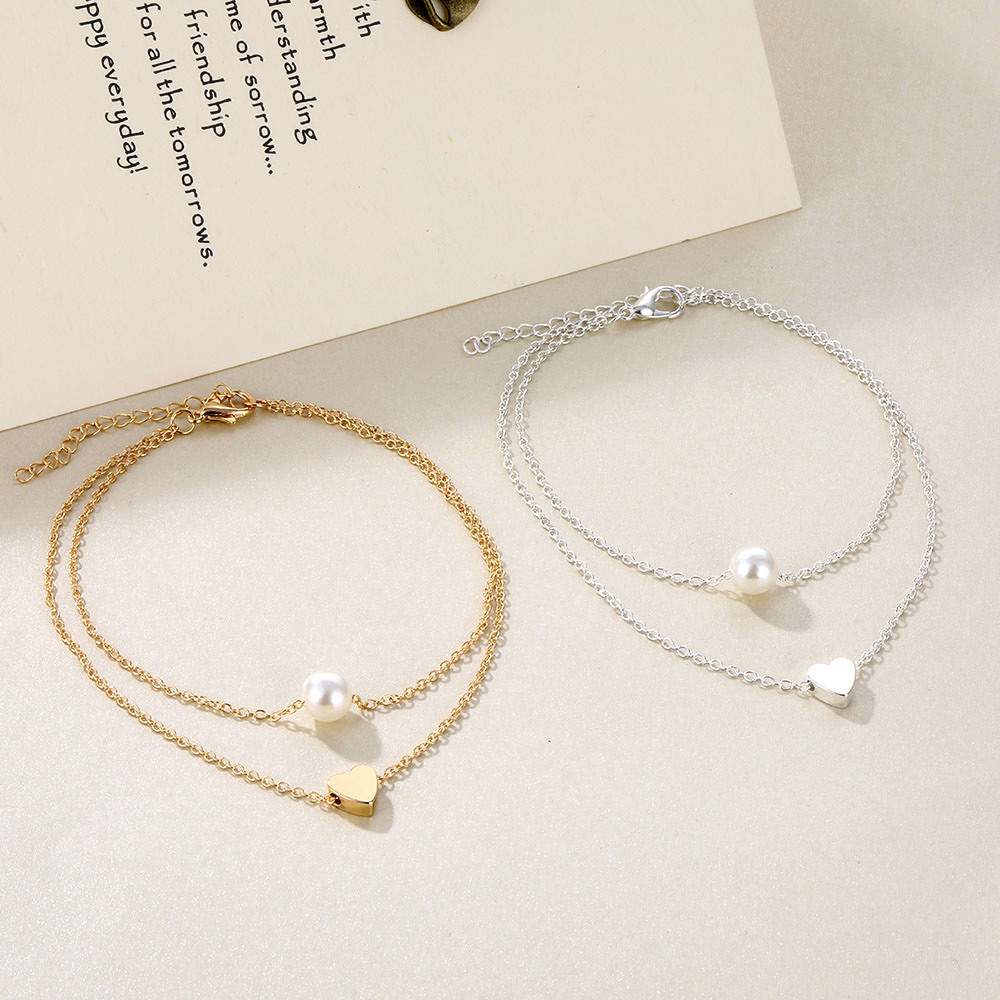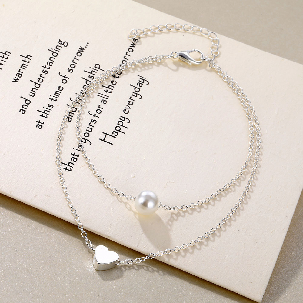 Alloy Double Layer Love Beach Anklet Female Pearl