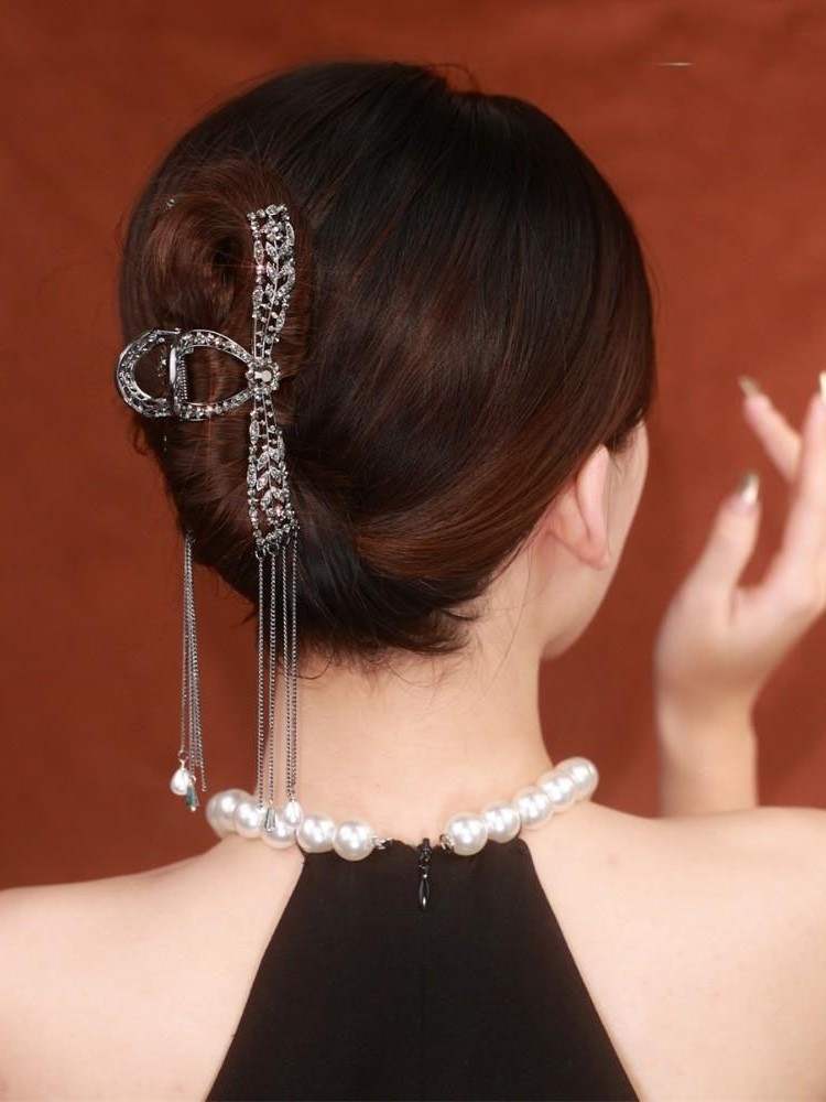 Product Details:Material: alloyHair clip classification: clipColor: blackPopular element: tasselPackage content:Hair clip X1