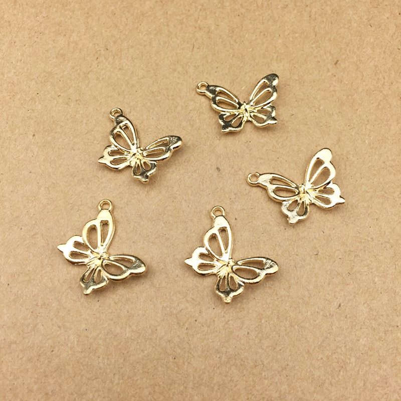 Type: Pendant Material: Alloy Treatment:Process Color: Golden butterflySize: Butterfly 14x19mm