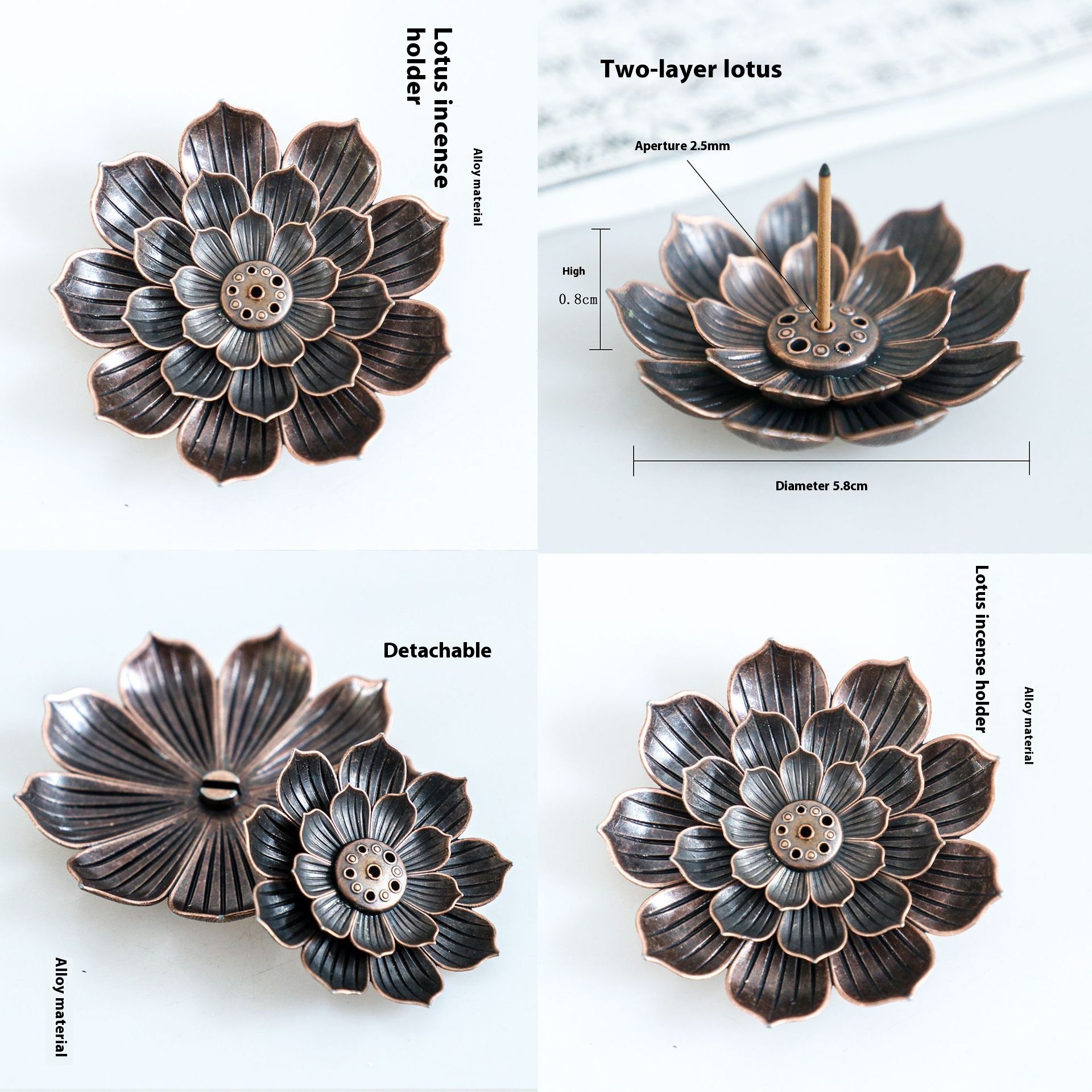 Specifications: 6-hole Lotus copper color, 6-hole Lotus red copper color, red copper lotus incense stick two layers, red copper lotus three layers, Trollius chinensis two layers, Trollius chinensis three layers, single layer Lotus red copper, single layer Lotus Gold, single layer Lotus red, single layer Lotus Blue Purple, single layer Lotus peacock blue, single layer Lotus Blue