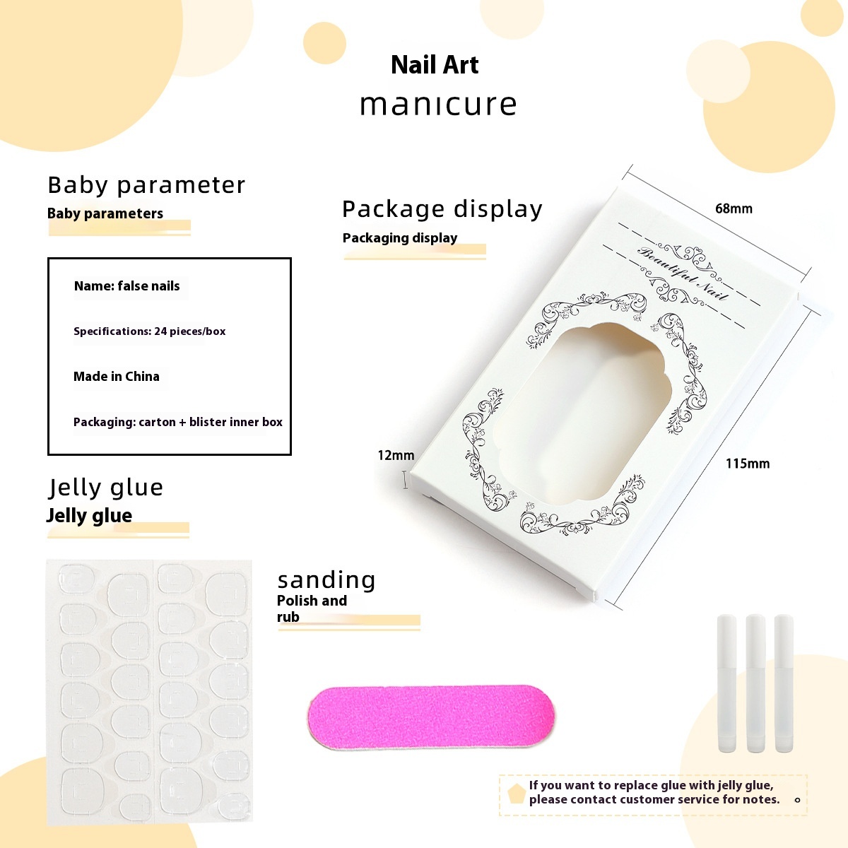 Nails*24pcs +Jelly glue+rubbing strips