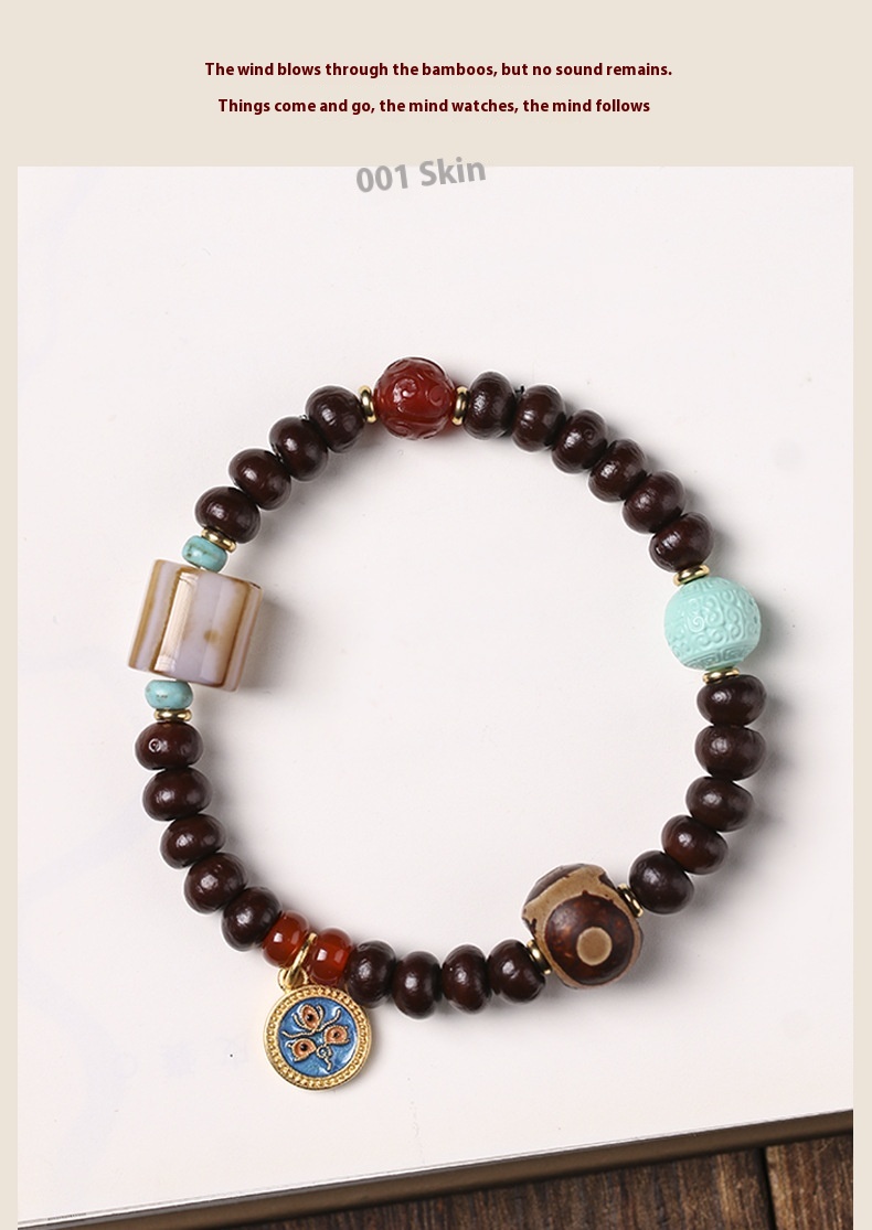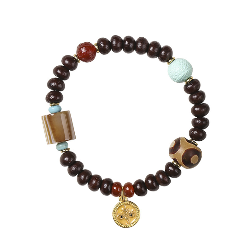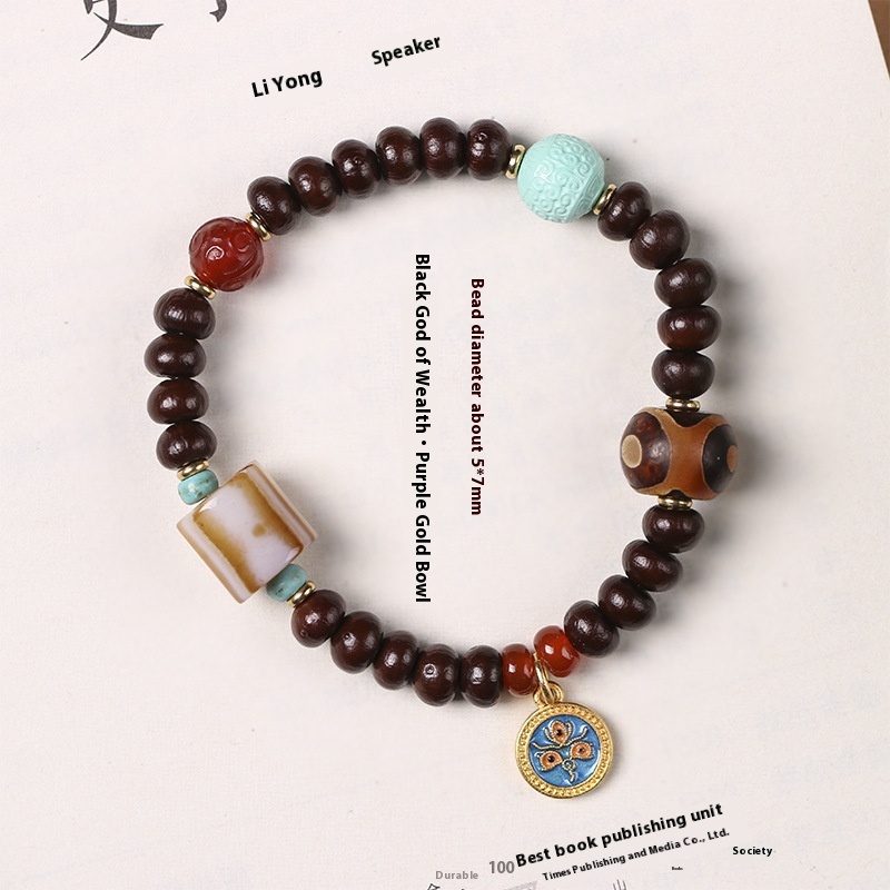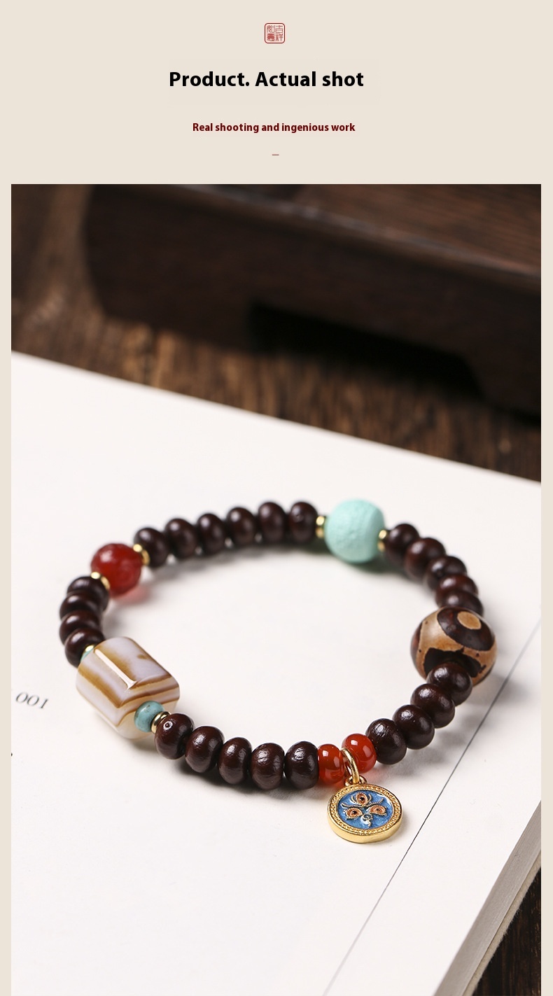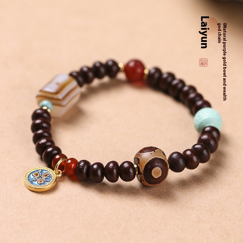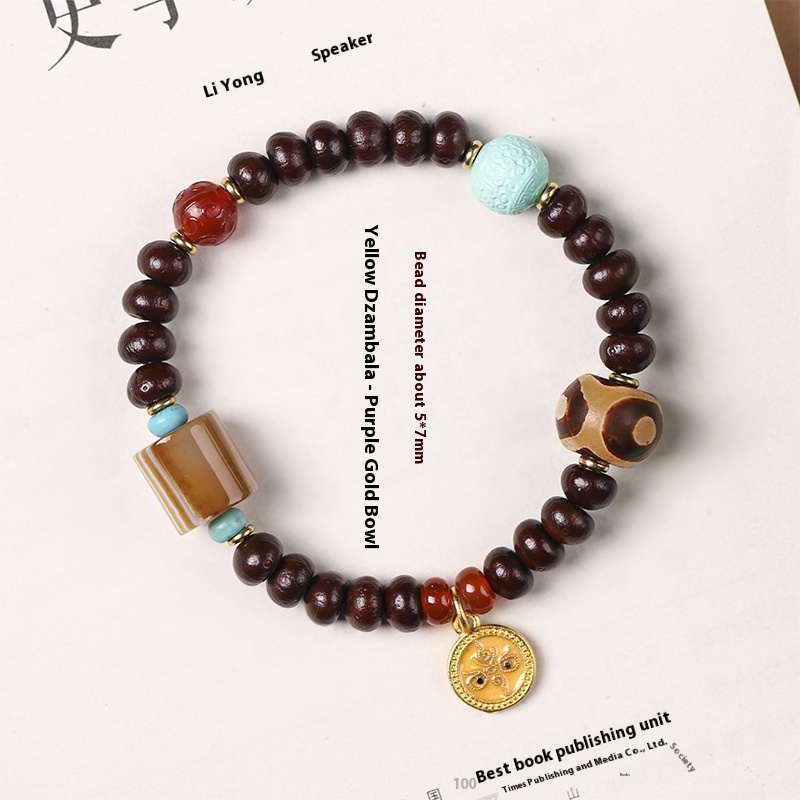Alms Bowl Bodhi Single Circle Tibetan Old Agate Beads Wooden Chain