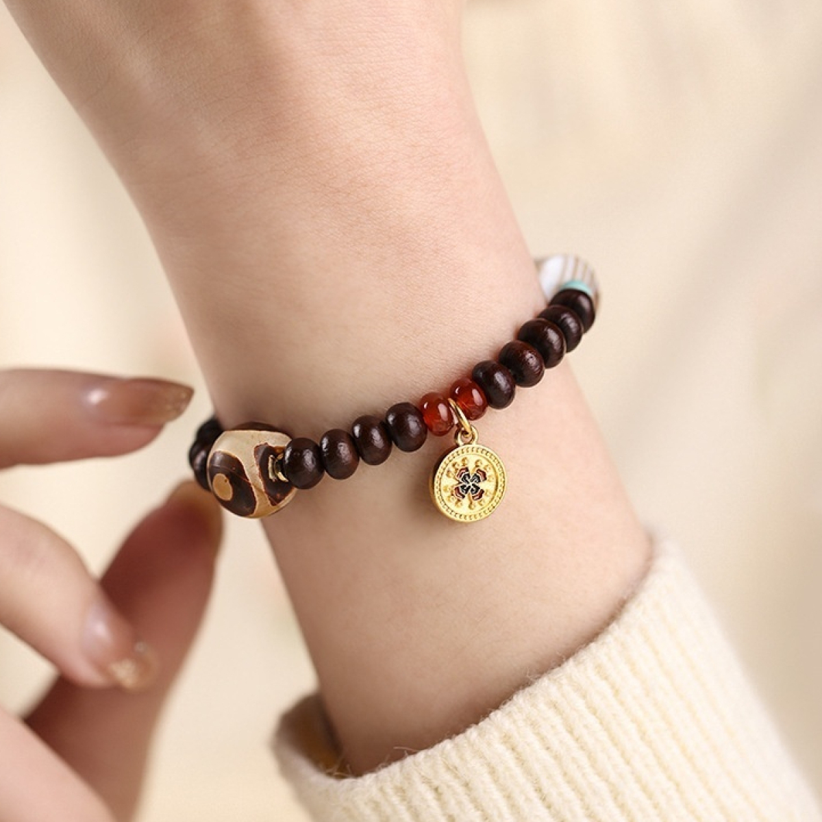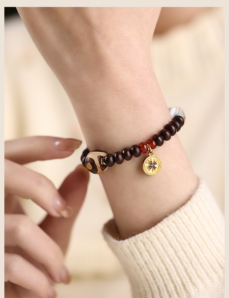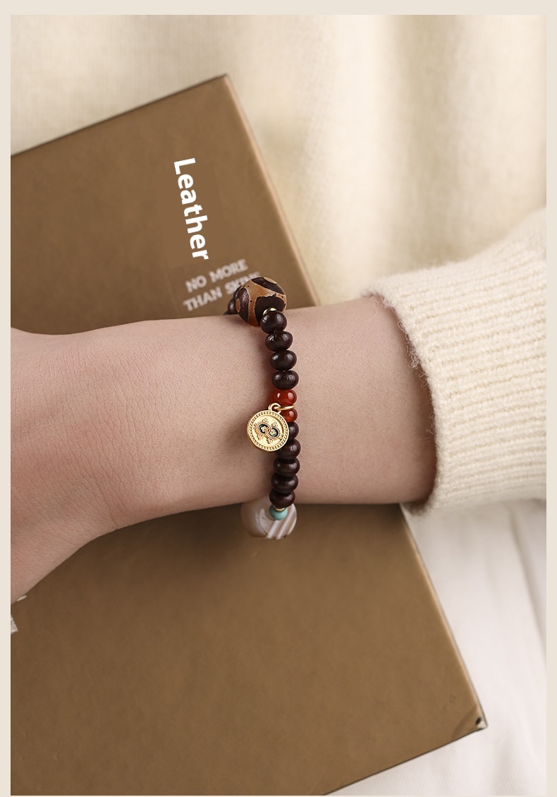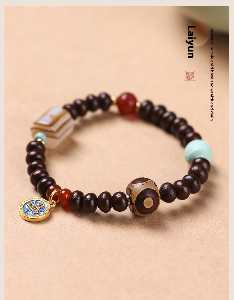 Alms Bowl Bodhi Single Circle Tibetan Old Agate Beads Wooden Chain