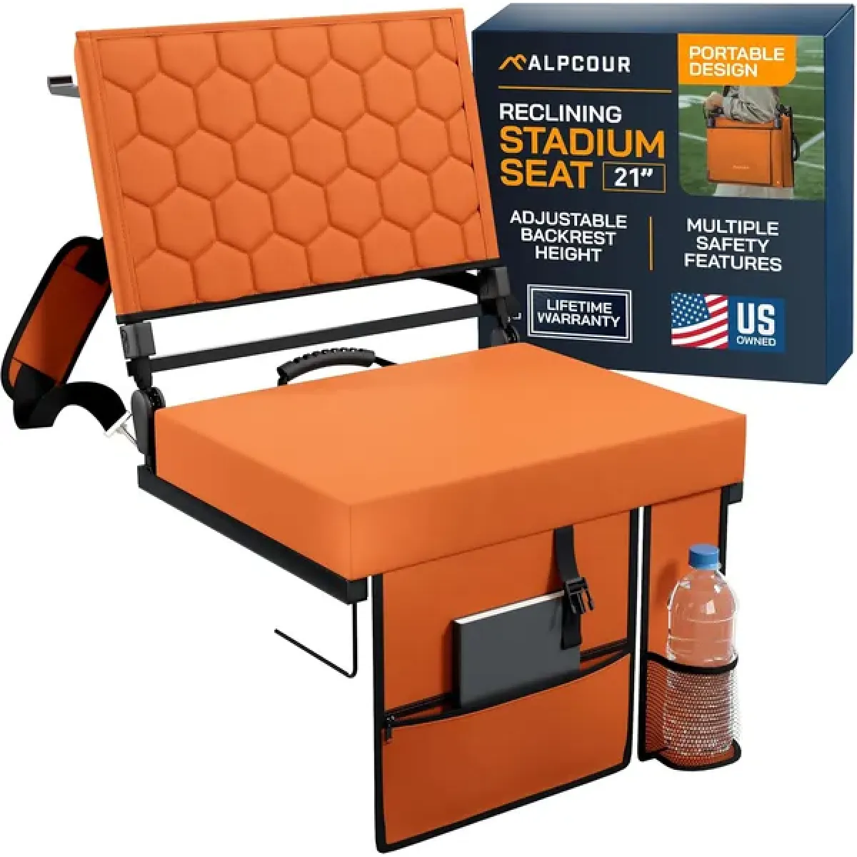 Alpcour Folding Reclining Stadium Seat With Back Support For Bleachers