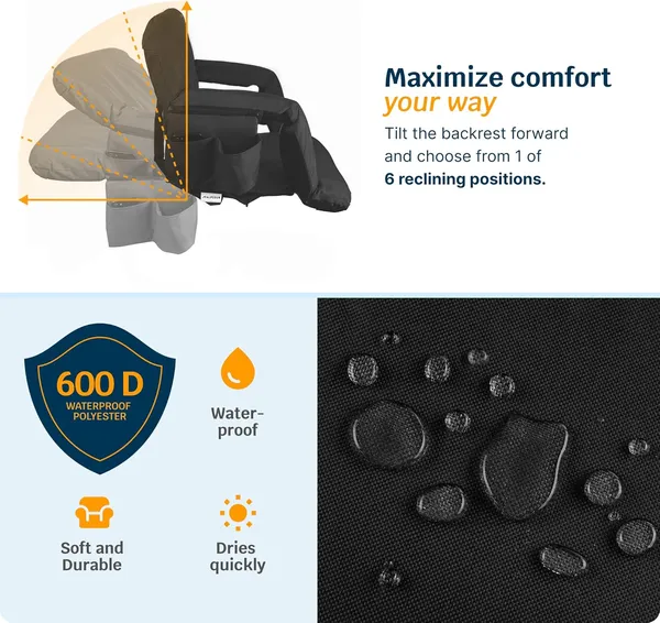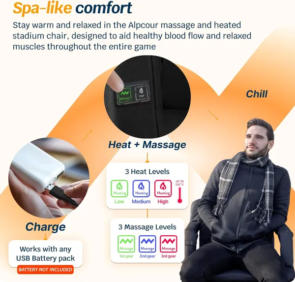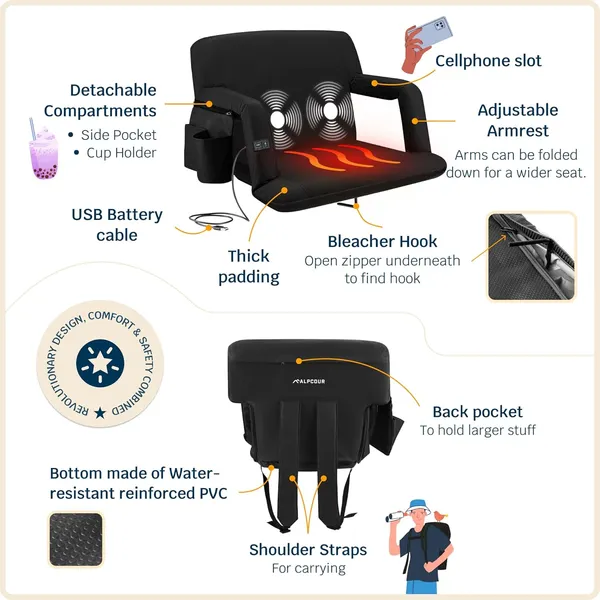 Alpcour Heated Massage Reclining Stadium Seat For Bleachers With Back Support