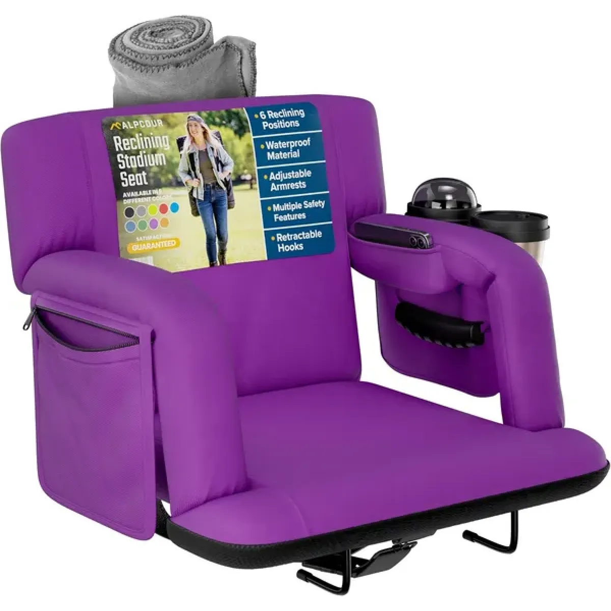 Alpcour Premium Reclining Stadium Seat For Bleachers With Back Support