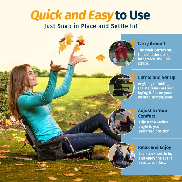Alpcour Stadium Seat - Foldable, Padded Bleacher Chair With Backrest, Armrest, Pockets, & Cup Holder