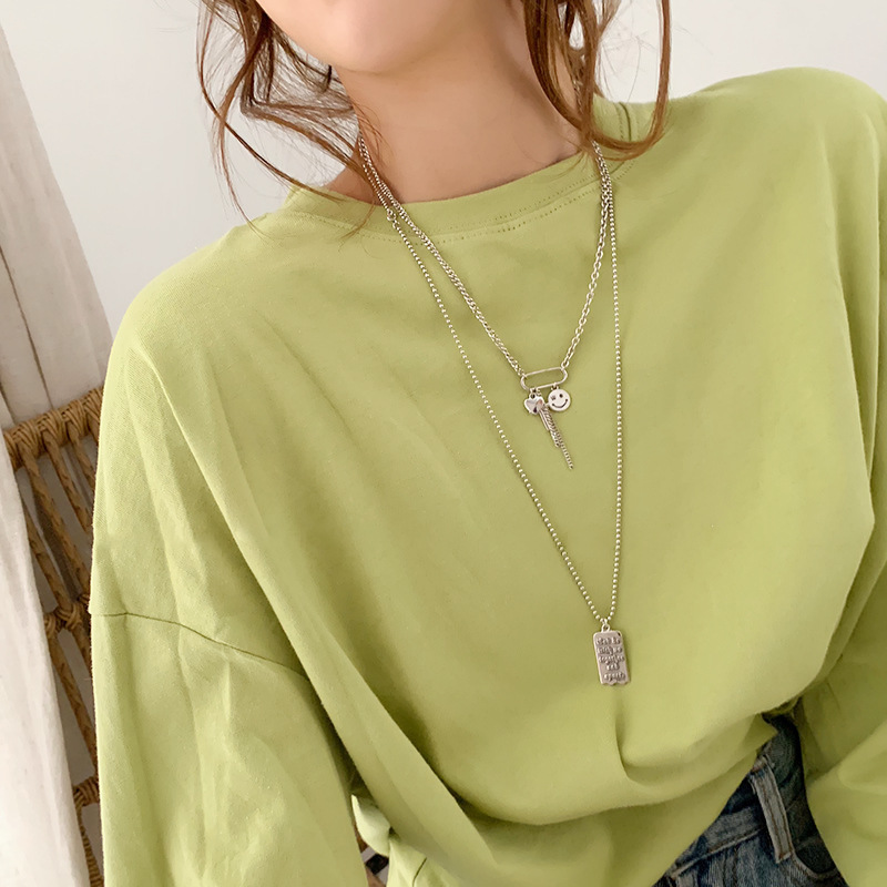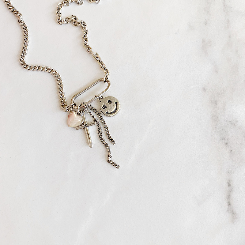 Color: smiling face tassel, square necklace